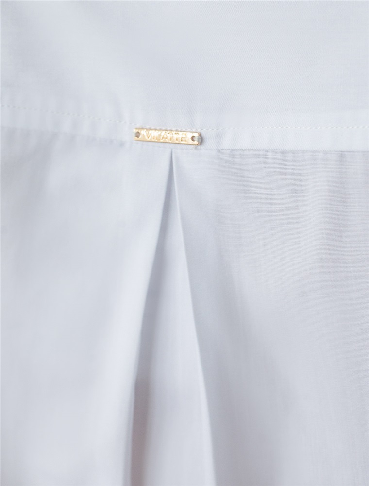 Укороченная блузка выполнена из хлопка. Лаконичная модель дополнена карманом. Изделие хорошо держит форму, что позволяет создать стильные строгие образы в офис. Чтобы подчеркнуть линию талии не теряя пропорций, сочетайте в комплекте с прямыми и широкими брюками. В более расслабленном образе – с джинсами трубами.