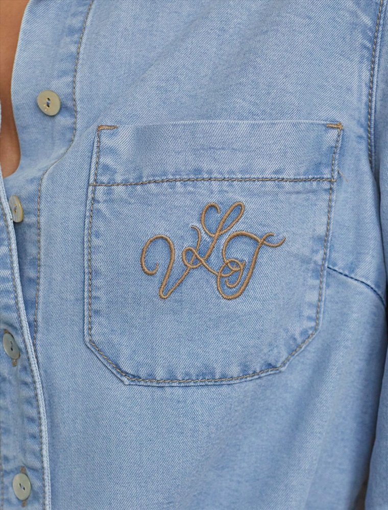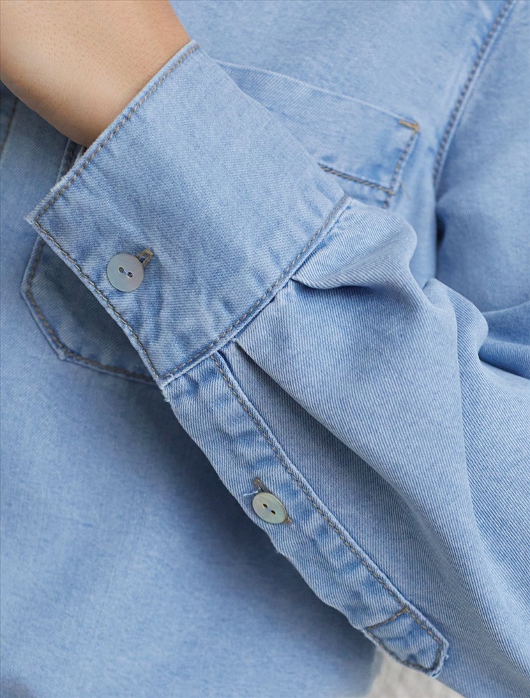 Состав: 70%Лиоцелл (Вис) 20%ПЭ 10%Вис; Плотность: 7,8 OZ Укороченная стильная блузка светло-голубого цвета с кулиской по низу выполнена из мягкого джинсового лиоцелла плотностью 7,8 OZ, который отлично держит форму и обеспечивает комфортную посадку на любую фигуру. Кулиска сформирует красивый силуэт, позволяя легко регулировать длину по желанию и подчеркнет достоинства фигуры, не стесняя движений. Короткая джинсовая рубашка на пуговицах с отложным воротником придаст образу стильный и современный вид. Практичная деталь — карман на груди с аккуратной вышивкой в виде логотипа бренда - украшает изделие. Ткань сочетает прочность и мягкость лиоцелла с вискозой, что делает её невероятно комфортной, дышащей, устойчивой к сминанию и идеально подходящей для чувствительной кожи. Благодаря нежным тактильным ощущениям, будто шелк, от которого ощущается приятная прохлада, рубашка отлично подходит для создания легких летних образов или стильных ансамблей на каждый день засчет своей универсальности. Длинный рукав гарантирует свободу движений и удобство на весь день. Джинсовую блузку можно сочетать в стиле кэжуал, а также создавать монохромные образы или добавлять яркие акценты с помощью аксессуаров. Эта джинсовая рубашка на пуговицах станет базовым элементом гардероба для тех, кто ценит сочетание моды и удобства. Рекомендуем сочетать с артикулами: D54.257, D56.127, D54.239