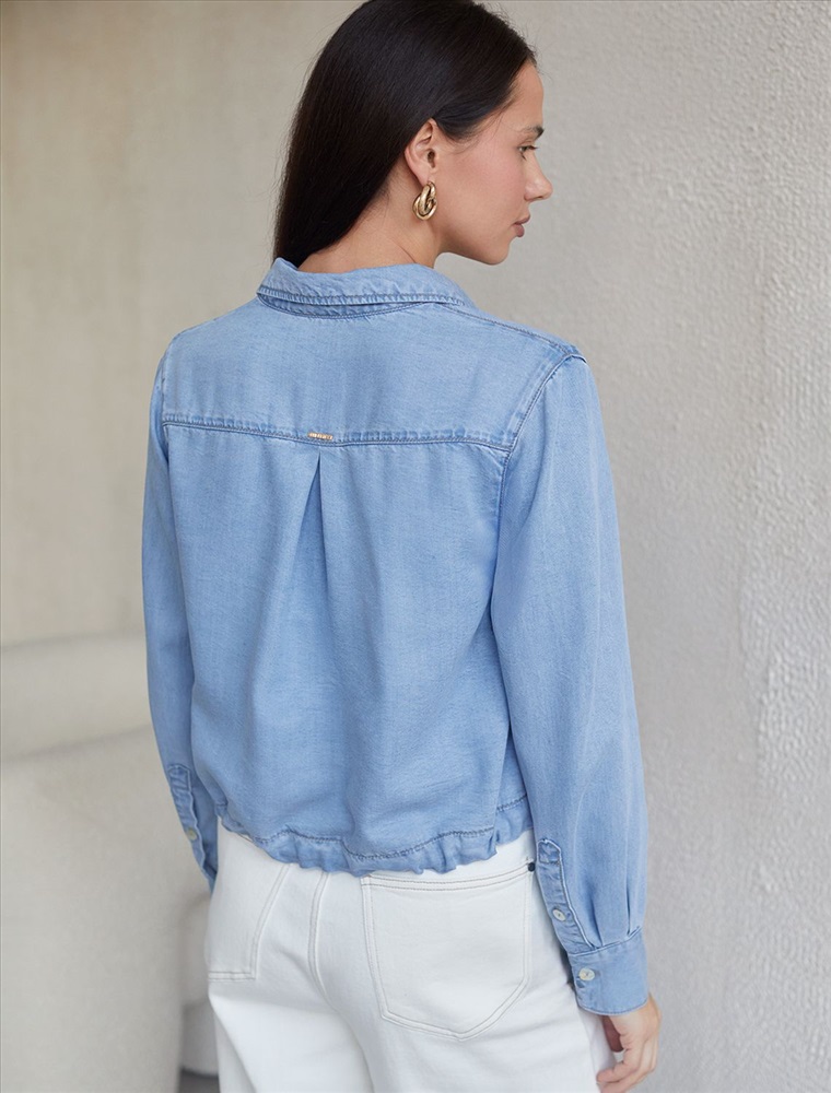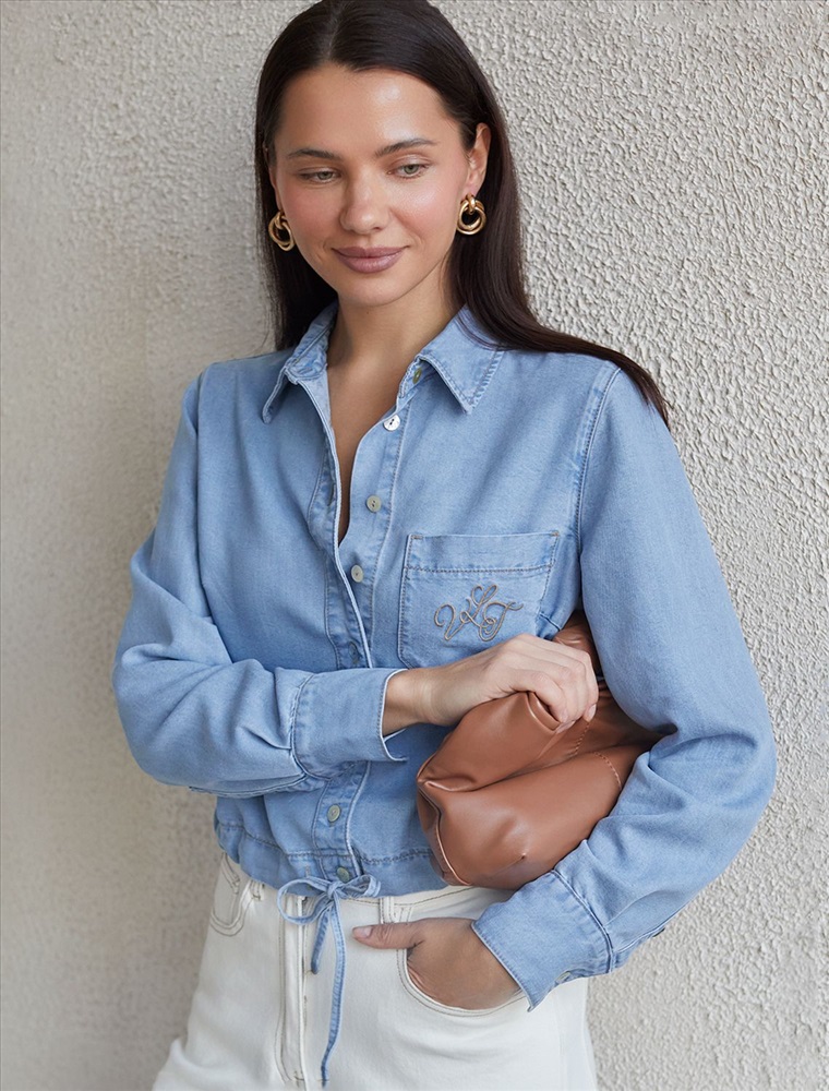 Укороченная блузка с кулиской из джинсового лиоцелла