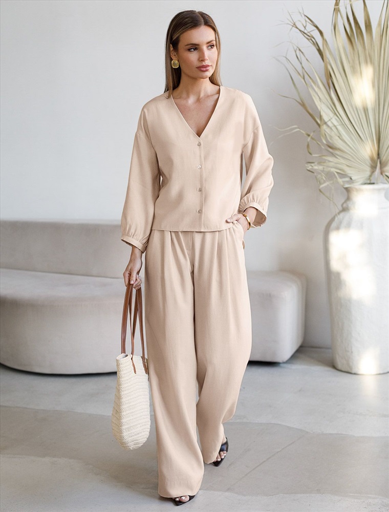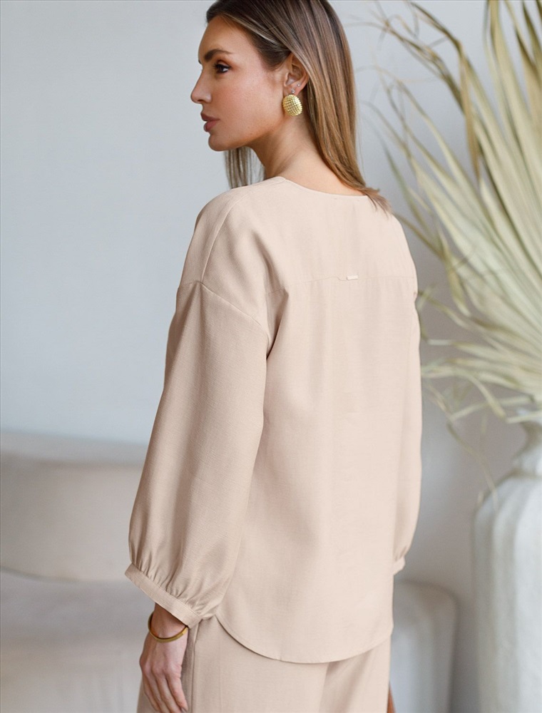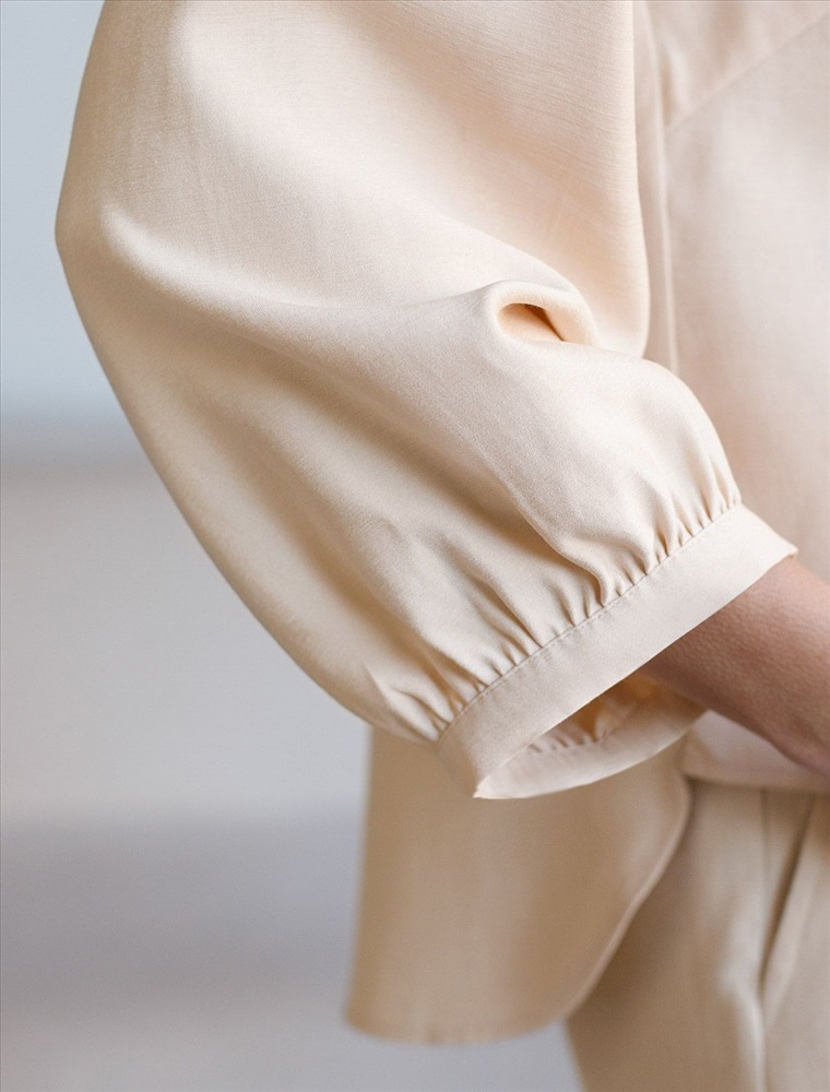 Состав: 92%Лиоцелл (Вис) 8%ПЭ; Плотность: 180 Г/м2 Элегантная укороченная блузка овсяного цвета выполнена из плотного лиоцелла. Лиоцелл это более дорогой и экологичный вариант вискозы, очень прочный и шелковистый. Ткань отличается от регулярной коллекции из лиоцелла - она содержит еще больше лиоцелла (92%), благодаря чему имеет более нежную шелковистую фактуру. Модель дополнена объемными рукавами длиной 7/8, создающими модный акцент. Укороченная передняя часть блузки выгодно подчеркивает линию талии, а удлиненная спинка обеспечивает комфорт. Этот асимметричный фасон придает образу динамичности, а V вырез визуально вытягивает силуэт. Свободный крой романтиной блузки не сковывает движений и отлично садится по фигуре даже на большие размеры, скрывая возможные недостатки. Эта легкая блузка с застежкой на пуговицы идеальный выборо для комфорта и стиля в теплое время года, она идеально адаптируется под любой повод. Реомендуем сочетать с артикулами: D26.208, D24.313
