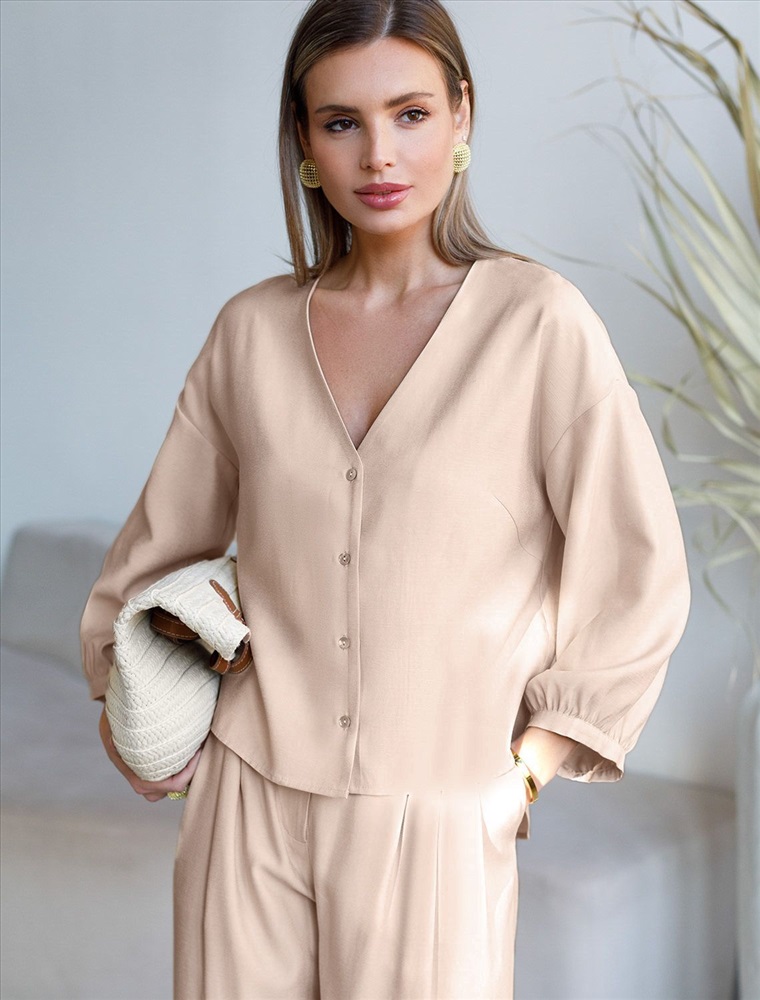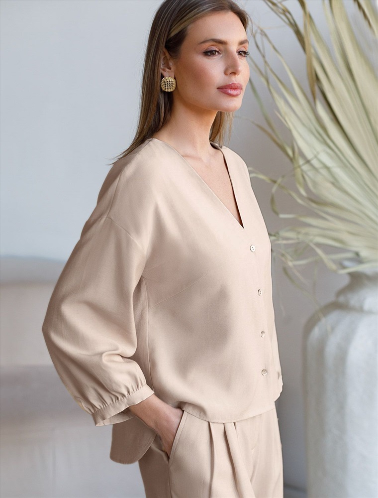 Укороченная блузка с V вырезом из плотного лиоцелла