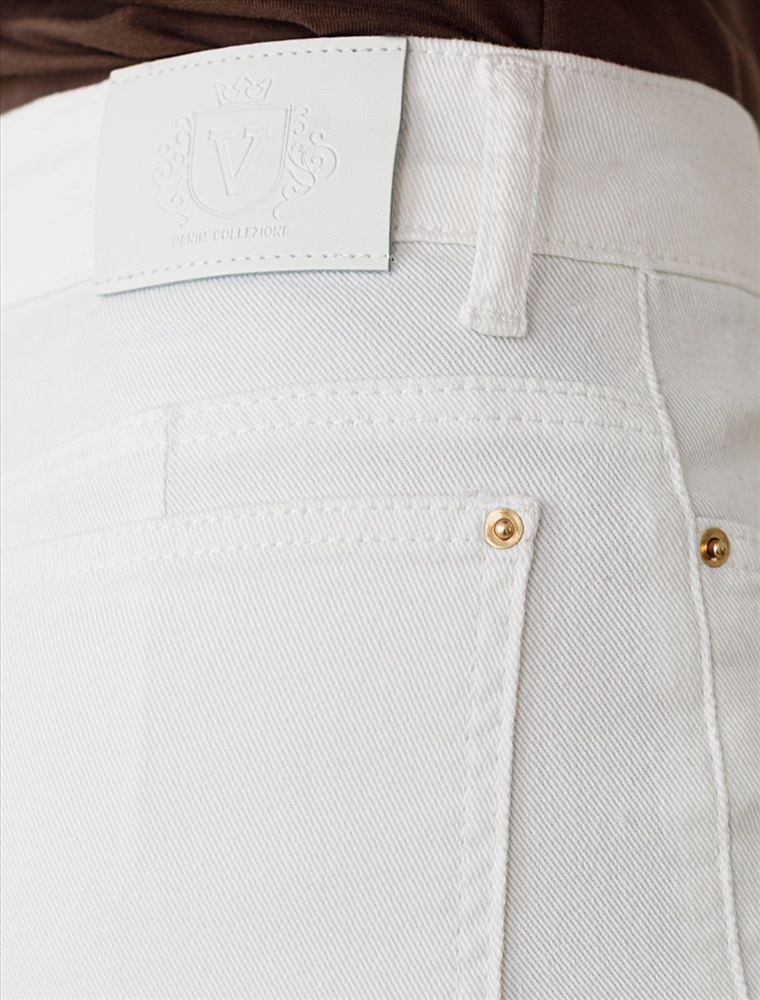 Укороченные джинсы белого цвета выполнены из плотного денима 11 OZ - 11 OZ - легкость и свобода движений, подходят для активного дня. Главная особенность этой модели — подшитый низ штанин, но дополнен стильнами рваными элементами для создания расслабленного образа. Благодаря эластичной ткани джинсы прекрасно садятся на любую фигуру и не сковывают движений. Такие модели подходят на большие размеры и смотрятся современно. Они легко впишутся в ваш повседневный образ и подчеркнут индивидуальность благодаря продуманному дизайну, который сочетает в себе классику и гранж.