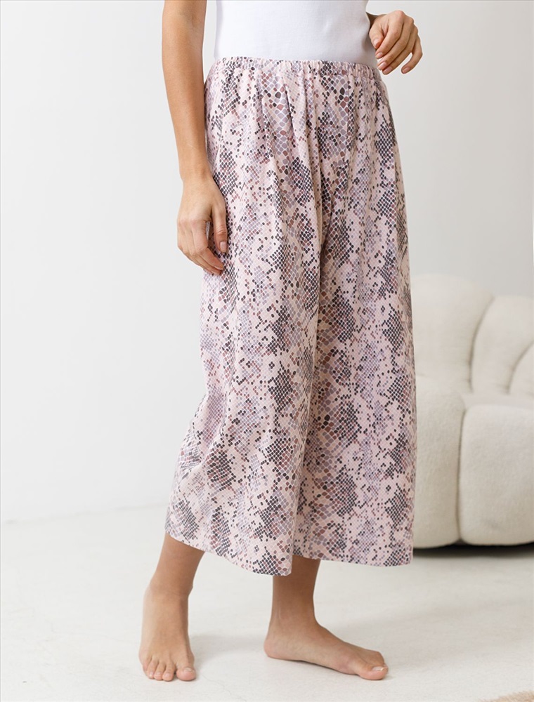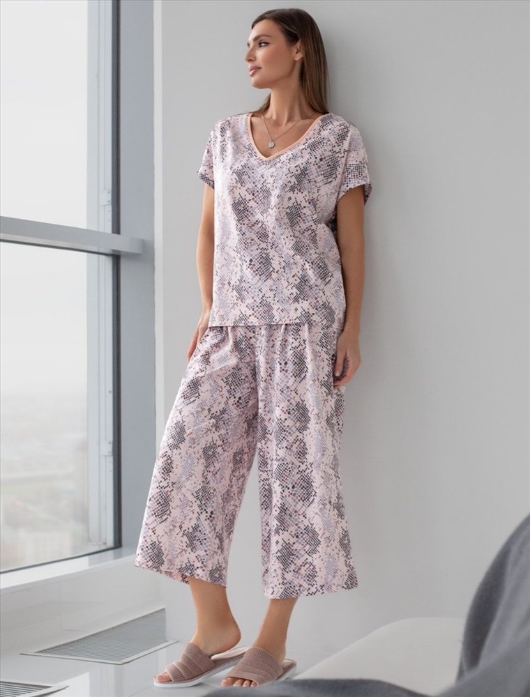Комфортные укороченные широкие брюки кофейно-пудрового цвета на тонкой резинке выполнены из 100% хлопка плотностью 140 Г/м2. Главная особенность этого изделия — тонкое кулирное полотно, которое легче и воздушнее стандартного трикотажа. Благодаря своей деликатной текстуре модель идеально подходит для домашних образов и пижамных комплектов. Ткань отлично «дышит», обеспечивая максимальный уют во время сна и отдыха. Эти свободные брюки обеспечивают максимальную свободу движений благодаря широкому крою. Эластичная резинка в области талии гарантирует удобную посадку и индивидуальное прилегание по фигуре. Защипы добавляют выразительность образу и помогают сформировать актуальный силуэт, подчеркивая современные тенденции. Повседневные брюки с трендовым змеиным принтом подходят для больших размеров, мягко скроют возможные недостатки фигуры, подчеркивая комфорт и стиль. Домашние брюки кюлоты отлично сочетаются с разными вариантами верхней одежды, поэтому их можно носить не только дома, но и на прогулках. Удобные брюки созданы для тех, кто ценит комфорт и практичность без лишних деталей.