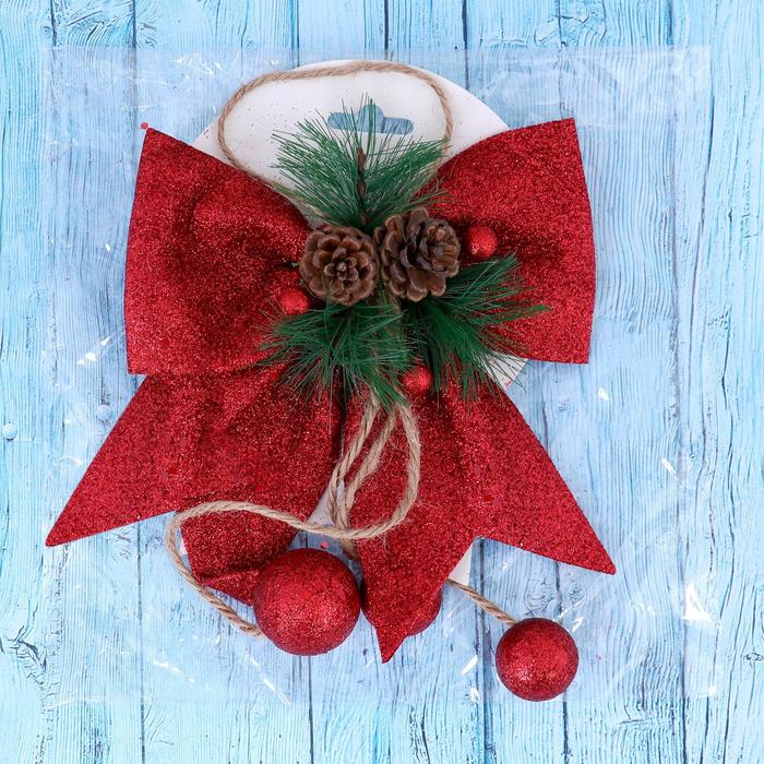 Создаём атмосферу волшебства Красный бант станет не только украшением, но и символом тепла и уюта в вашем доме в зимний период. Его яркий цвет и оригинальный дизайн помогут создать атмосферу радости и веселья, что особенно важно в преддверии праздников. Используйте его для декорирования ёлки, дверей или в качестве акцента в праздничных композициях, чтобы подчеркнуть значимость семейных традиций и создать незабываемую атмосферу. Это украшение не просто добавляет яркость в ваш интерьер, но и становится частью ваших новогодних воспоминаний. Его стильный вид и качество материалов обеспечивают долговременное использование, позволяя вам наслаждаться праздником каждый год. Красный бант — это не просто элемент декора, а возможность создать уникальную атмосферу, где каждый момент наполнен радостью и волшебством. КомплектацияВ комплект входит одно новогоднее украшение размером 16×18,5 см. Комментарии к товару
