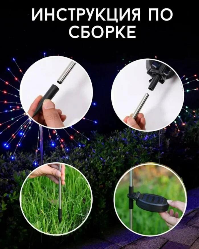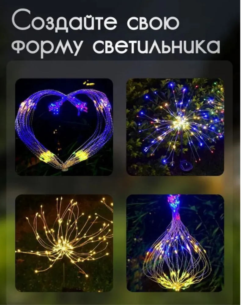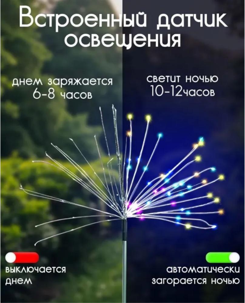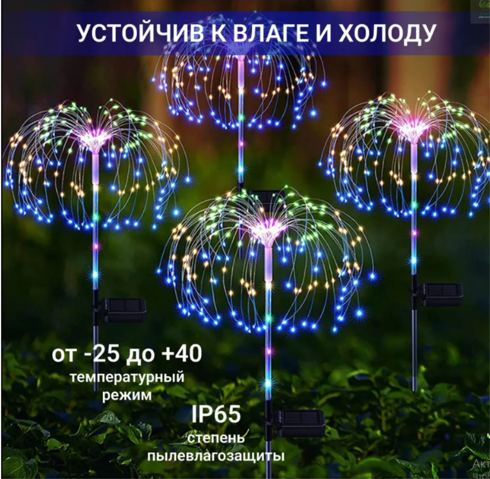 Уличный светильник на солнечной батарее "Одуванчик" , "Фейерверк" 1 шт Цвет свечения: Теплый белый, разноцветный Комментарии к товару