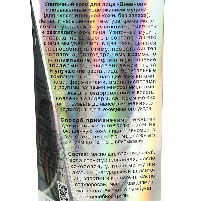 Габариты: 3,5 x 3,5 x 12 Страна: Россия В боксе: 30 шт Состав: См. на упаковке 100% Материалы: см. на упаковке Фасовка: по 1 шт Индивидуальная упаковка: Картонная коробка / упаковка Сертификат: ЕАС Вес, г/Объём, мл: 50 Темпер. ограничение НЕ НИЖЕ ℃: 0 Тип кожи: Для всех типов Возраст: Для всех возрастов Применение: Дневной Дневной крем с муцином улитки подходит для использования в дневное время суток и достижения моментального эффекта. Крем имеет лёгкую насыщенную текстуру и состоит из натуральных компонентов. Улиточный муцин способствует синтезу коллагена, благодаря чему кожный покров разглаживается, подтягивается и укрепляется, а цвет лица улучшается. Средство имеет нейтральный аромат. Крем можно использовать до нанесения макияжа и использовать для ежедневного ухода за любым типом кожи. Подходит всем возрастным группам и абсолютно безопасен для кожи лица. Способ применения: нанести на очищенную кожу лица по массажным линиям, нежными движениями равномерно распределить крем до полного впитывания. Состав: масло ши (карите), воск пчелиный, вода структурированная, масло кокосовое, муцин улитки (натуральный аллантоин, эластин и коллаген), масло сафлоровое, масло макадамии, масляная вытяжка тамбуканской лечебной грязи. Активные компоненты крема