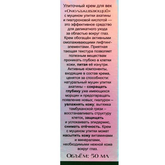 Натуральный муцин ахатины (гигантской улитки) сокращает глубину морщин и предотвращает появление новых, гиалурон активно увлажняет кожу, вытяжка тамбуканской грязи способствует регенерации клеток, защищает, успокаивает.