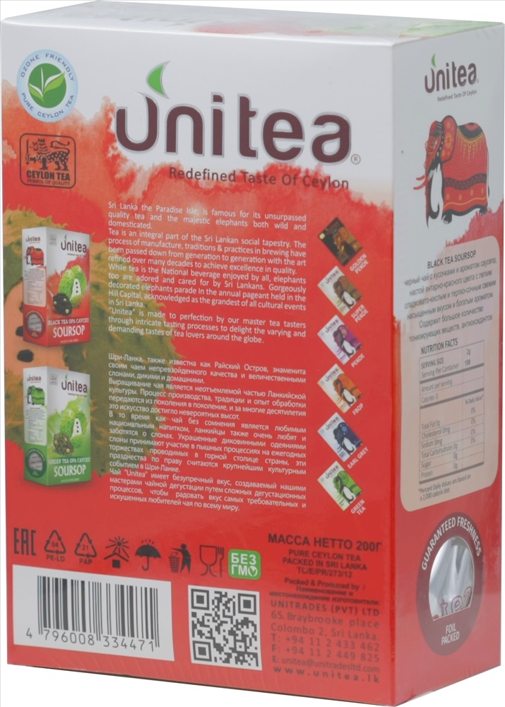 Черный цейлонский чай высшего сорта с кусочками и ароматом экзотического саусепа. 100% натуральные компоненты.Настой янтарного цвета с кисло-сладким и терпко-сочным насыщенным вкусом и ярким свежим ароматом. Содержит большое количество тонизирующих веществ и антиоксидантов. Собран и упакован на Шри-Ланке.