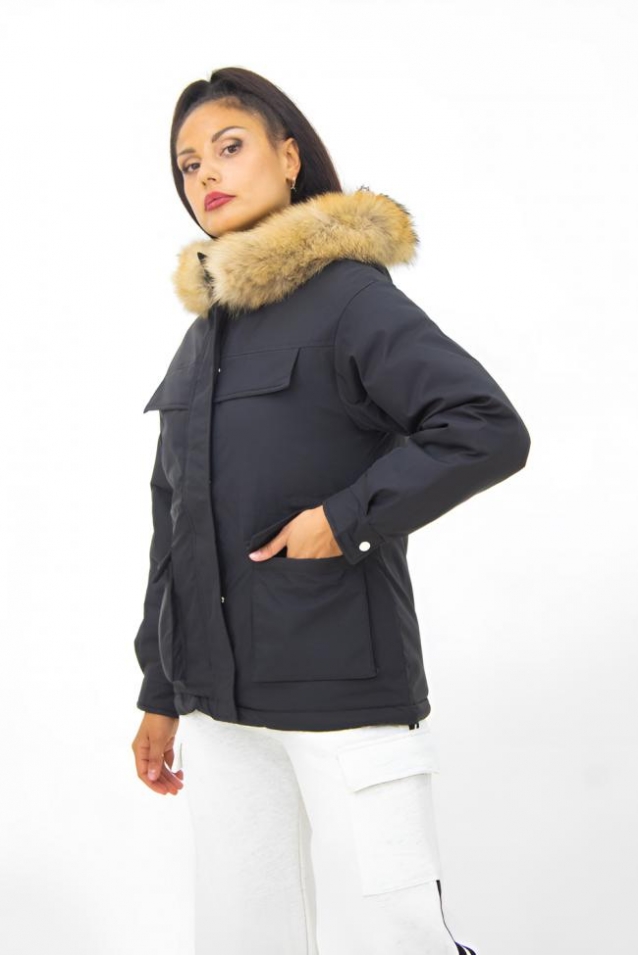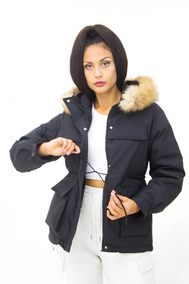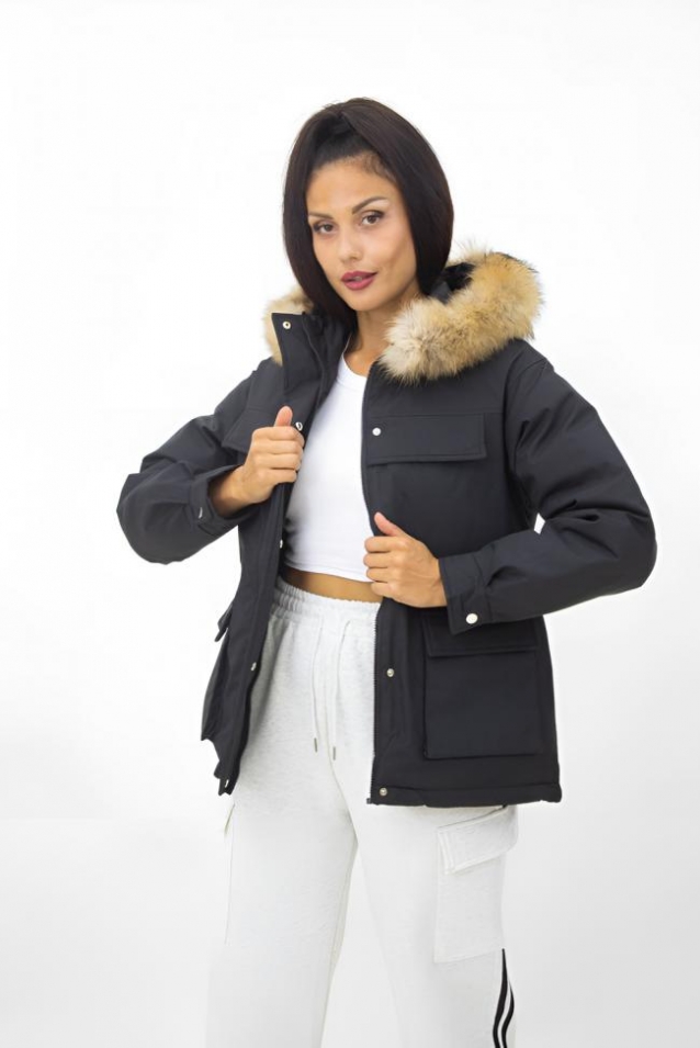 Универсальная парка с натуральным мехом, Евро-зима, демисезон. арт.615 (Черный)