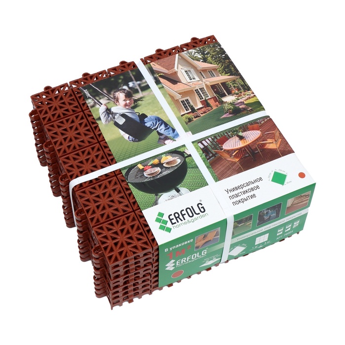 Покрытие ERFOLG H&G эластичное и прочное, устойчиво к механическим, температурным и климатическим воздействиям и нагрузкам. Его можно использовать как на улице, так и внутри помещений в силу высокой сопротивляемости бактериям и грибкам. Каждый модуль обладает эффектом подвижного замка и скосом, что позволяет выкладывать площадки любых размеров и не бояться деформации покрытия.