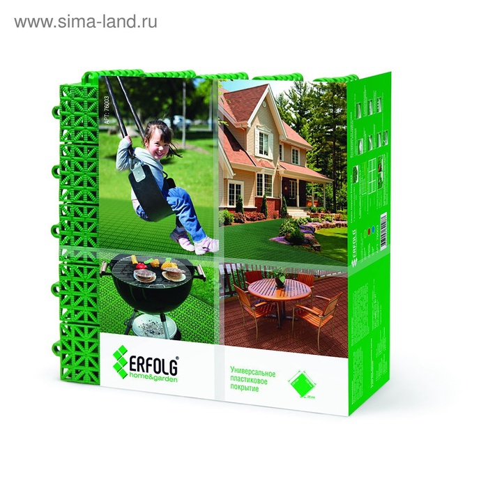 Преимущества использования модульных покрытий лёгкость и оперативность монтажа. Для того чтобы оформить детскую или спортивную площадку, вам не потребуется специальных навыков или дополнительных материалов. Модули соединяют между собой с помощью элементов крепления, которые находятся на самом покрытии: ножка замка вводится в скобу, надавливается сверху — замок защёлкивается. Мобильность — при необходимости всегда можно заменить отдельный модуль. Даже после дождя покрытие остаётся практически сухим, так как вода не скапливается на поверхности благодаря дренажной структуре модулей.