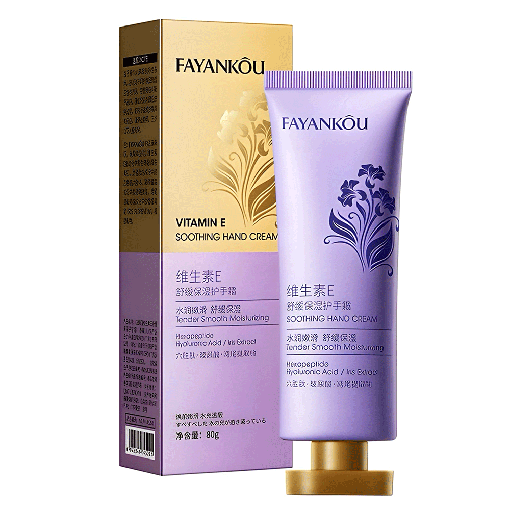 FAYANKOU представляет успокаивающий крем для рук с витамином Е. Это увлажняющий и восстанавливающий крем для гладкости и красоты. Он успокаивает и глубоко увлажняет кожу рук. Помогает осветлить тон кожи и улучшить ее состояние. Крем разработан специально для сухой и грубой кожи. После применения ваши руки станут нежными и гладкими. Вы почувствуете приятный и тонкий аромат.