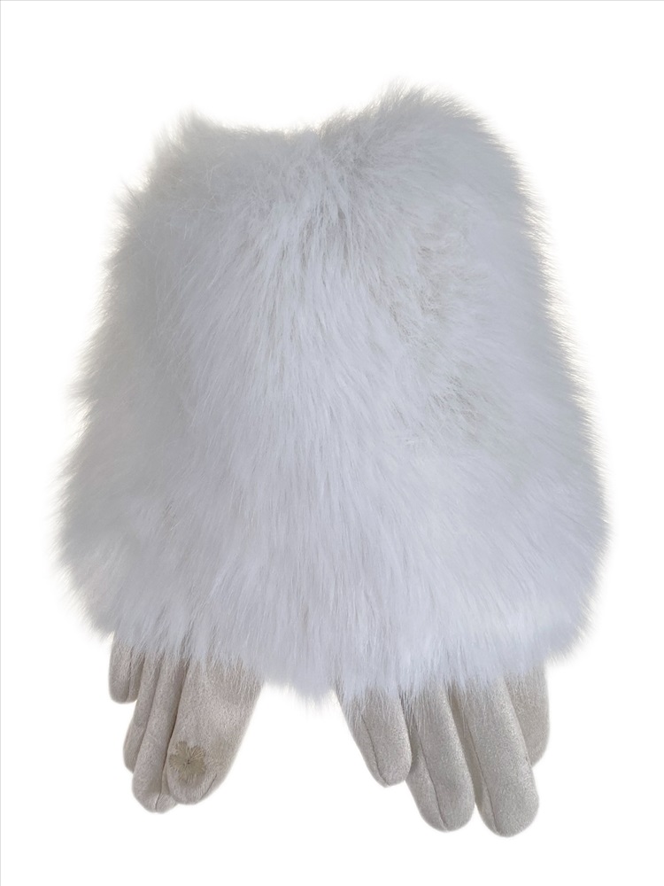 Утепленные женские перчатки с мехом , цвет белый