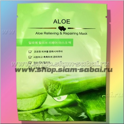 Увлажняющая тканевая маска для лица с Алое Вера Aloe Face Mask 3D Тканевая маска с экстрактом Алое Вера для быстрого качественного увлажения кожи лица, для моментального снятия раздражения, сухости и шелушения кожи, а также для устранения покраснения с кожи лица после загара. Благодаря уникальной 3D форме на тканевой шелковистой основе, пропитанной питательными веществами и экстрактом алое Вера, нежная на ощупь, маска идеально ложиться на лицо, не течет и очень удобна в использовании. Способ применения: