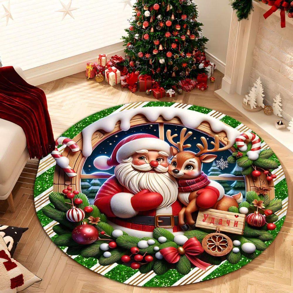 Уютный и очень красивый Новогодний коврик, противоскользящий, диаметр 900 мм Комментарии к товару