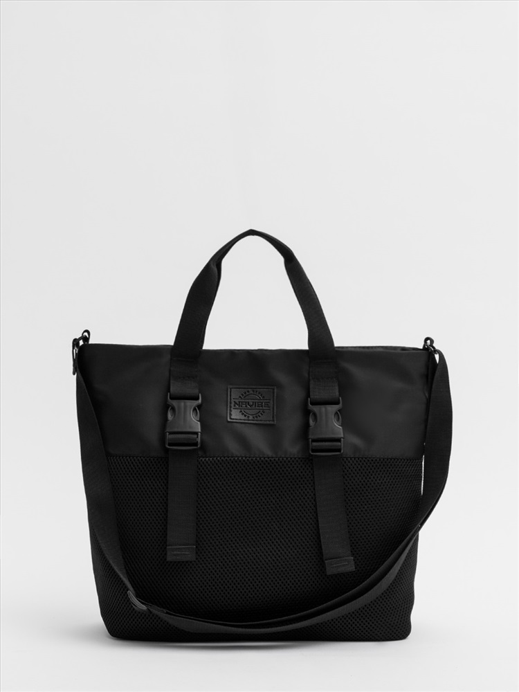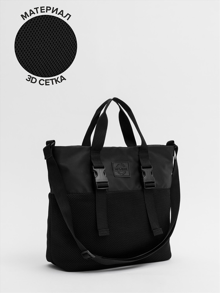 Современный тоут габарита М из объёмной сетки и твила — универсальный аксессуар для активной жизни.