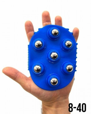 Варежка, массажер, антицеллюлитная. Цена: 150р Этот массажер может стать помощником для быстрого и эффективного устранения боли и расслабления "забитых" мышц в шее и спине, для антицеллюлитного и корректирующего массажа всего тела, поможет эффективно избавиться от от "апельсиновой корки". Поможет снять усталость после долгих пеших прогулок, нахождения на каблуках и расслабить мышцы после интенсивных тренировок. На варежке расположено 7 металлических шариков диаметром 10 мм. в пластиковой обойме, которые легко вращаются и помогают расслабить мышцы, улучшить циркуляцию крови и лимфы, разгладить кожу. Массжер изготовлен из эластичного и безопасного ПВХ, легко надевается на кисть руки, на обратной стороне имеет аппликатор и щеточку на боковой поверхности. Размеры: 13х10,5х4 см.