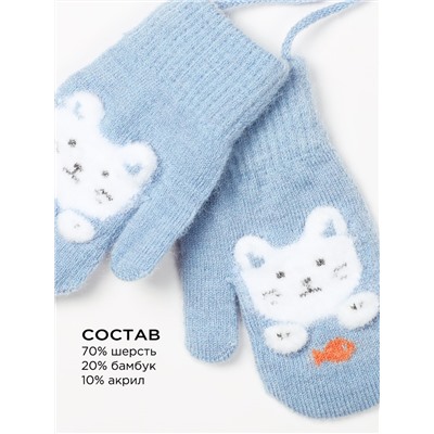 Производитель: Kim Lin; Цвет: голубой; Бренд: Kim Lin; Пол: Девочки; Производитель: Китай; Сезон: зима; Категория: Варежки; Комплектация: 1 варежки; Уход за вещью: Деликатная стирка при температуре не выше 30С; Состав материала: 70% шерсть, 20% бамбук, 10% акрил