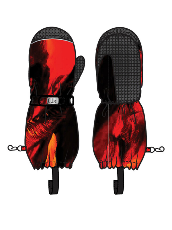 Зимние варежки-краги с мембраной. Утеплитель – синтепон. Мягкая ладошка из влагостойкого полиуретана. Регулируемая застёжка с липучкой по запястью. Застежка для скрепления пары между собой. Светоотражающие элементы.