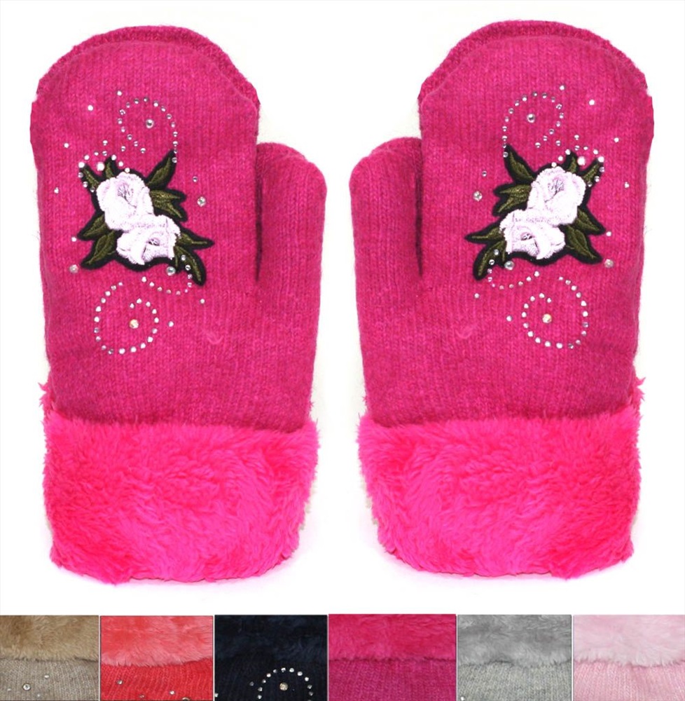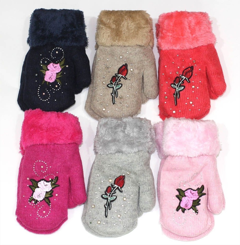 Варежки вязаные детские с отворотом "роза" Варежки детские изготовлены из шерсти . Комментарии к товару