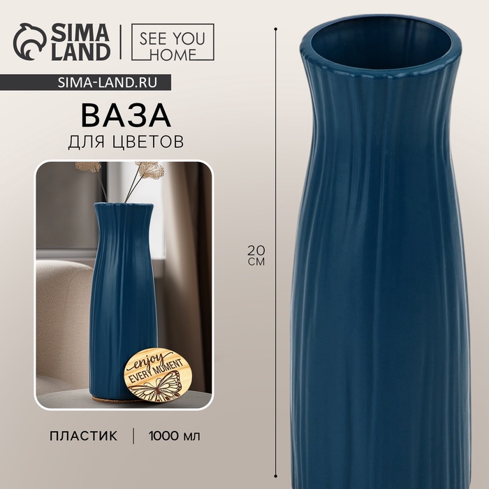Габариты: 7,5 x 7,5 x 22 Страна: Китай В боксе: 50 шт Состав: Пластик, пробка Материалы: пластик, пробка Фасовка: по 1 шт Индивидуальная упаковка: коробка Габариты товара: 7,5 см × 7,5 см × 22 см Сертификат: Не подлежит сертификации Набор: Нет Цвет: Синий Для кого: Унисекс Высота, см: 22 Объём, мл: 1000 Тематика праздника: Универсальная тематика Адресат: Без адресата Вид вазы: Настольная Материал: Пластик Комментарии к товару