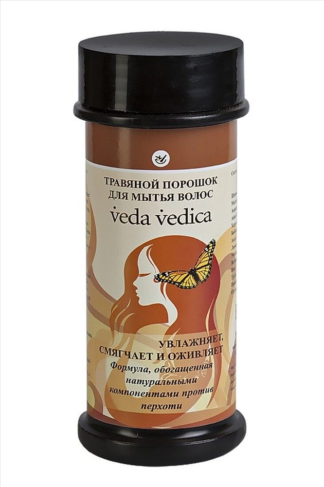 Аюрведический травяной порошок для мытья волос VEDA Vedica. Древнейший секрет обладателей роскошных волос – правильный уход и очищение волос при помощи натуральных средств. Что бы волосы были густыми, сильными и блестящими, корни волос должны быть крепкими, а кожа головы здоровой и ухоженной. Травяной порошок удаляет грязь, не нарушая естественного функционирования кожи головы. Травяной порошок для мытья волос VEDA Vedica создан на основе «природного мыла» cапталы, мыльного ореха и целебных трав. Эффективно и бережно очищает волосы и кожу головы, увлажняет и освежает волосы, питает, укрепляет и омолаживает корни волос, удаляет перхоть и предотвращает ее появление. Волосы хорошо очищаются, приобретают здоровье, силу и блеск. Активные ингредиенты: Мыльный орех (sapindus mukorossi) — очищает кожу и волосы, не обезжиривая их, делает волосы мягкими, пушистыми и послушными, предотвращает спутывание, действуя как бальзам, снимает воспаление, оказывает охлаждающий эффект, дает дополнительный объем. Харитаки (terminalia chebula) — стимулирует регенерацию клеток и рост волос, обеспечивает приток крови и питательных элементов к луковицам, помогает реактивировать неживые волосы, предотвращает преждевременную седину и выпадение волос, устраняет перхоть, придает сияние и блеск, жизнестойкость и силу. Амла (emblica officinalis) — восстанавливает поврежденные волосы, предупреждает выпадение волос и седину, улучшает кровообращение, регенерирует клеточный обмен и стимулирует рост волос, укрепляет корни и луковицы, возвращает волосам силу, упругость и блеск, устраняет перхоть, снимает раздражение и воспаление, дает антисептическую защиту. Бибхитаки (terminalia bellerica) — эффективное средство против облысения, преждевременной седины и для роста волос, усиливает структуру волос, делает их густыми, придает толщину, восстанавливает поврежденные волосы. Шикакай (acacia concinna) — мягко очищает волосы, не нарушая естественной защиты, регулирует деятельность сальных желез, удаляет излишки жира, перхоть, воспаления, питает волосы, способствуя их росту, кондиционирует, смягчая и предотвращая спутывание. Бильва (aegle marmelos) — предупреждает седину, выпадение волос, облысение, укрепляет здоровые волосы, стимулирует их рост, масло, получаемое из дерева, широко употребляется как средство для укладки и создания прически. Акация бабул (acacia nilotica) — ухаживает за волосами, дает им антисептическую защиту, очищает, убивает бактерии и грибки, эффективна против перхоти. Лимон (сitrus) — тонизирует и очищает кожу головы, стимулирует рост волос, дает антисептическую защиту, устраняет перхоть, удаляет излишний жир, придает волосам здоровый блеск. Мандарин (citrus raticulata) — эффективно очищает и тонизирует кожу головы, улучшает кровообращение, снимает воспаления, дает антисептическую защиту, удаляет излишки жира, питает волосы и луковицы и способствует росту волос, придает волосам упругость и красивый здоровый блеск, устраняет перхоть. Ветивер (vetiveria zizani