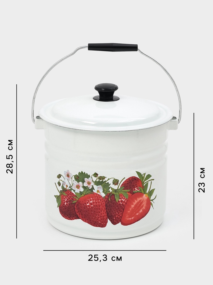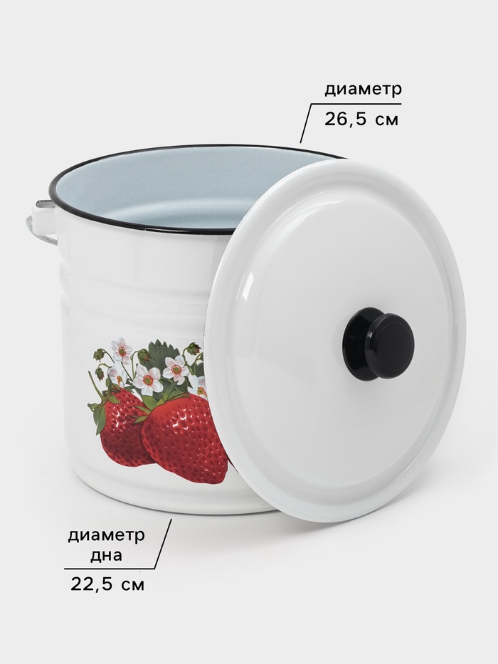 - Удобство в использовании: ручка обеспечивает комфортный хват даже при полной загрузке. Крышка защищает содержимое от пыли и посторонних запахов — идеально для хранения воды, молока, рассола или урожая с огорода.