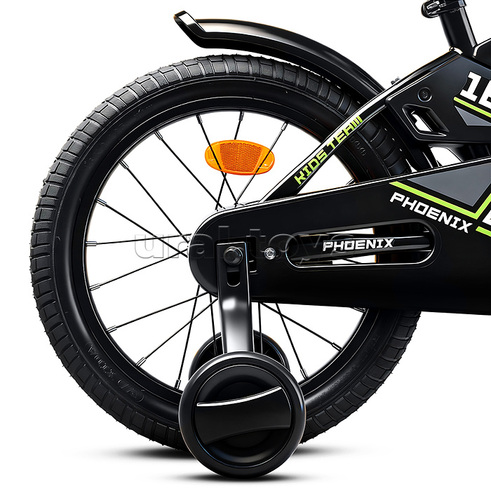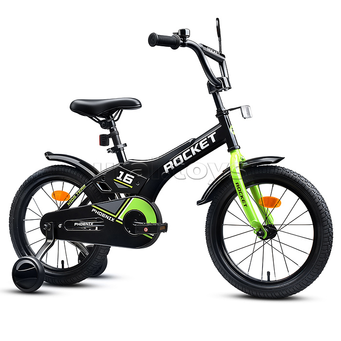 • Отлично держит дорогу за счет резиновых надувных колес, размером 16 дюймов. • В комплекте имеются дополнительные учебные колёса и звонок на руль. • Сиденье из ПВХ можно регулировать по высоте (52-62 см.) • Металлические брызговики защитят маленького велосипедиста от загрязнений. • Велосипед оснащен задним ножным тормозом. • Ширина руля: 50 см, оснащен противоскользящими прорезиненными ручками. • Велосипед подходит для детей 5-7 лет, ростом от 110 до 125 см. • Габаритные размеры велосипеда: 110 х 54 х 78 см. • Максимальная нагрузка: 50 кг. • Вес велосипеда без упаковки: 9 кг. • Рама: сталь. • Вынос: резьбовой. • Вилка: жесткая стальная. • Покрышки: 2,125.