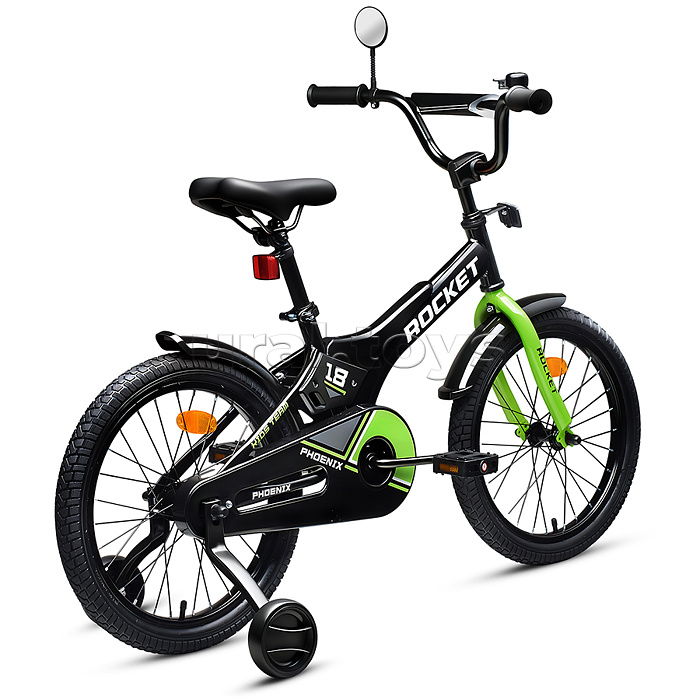 • Отлично держит дорогу за счет резиновых надувных колес, размером 18 дюймов. • В комплекте имеются дополнительные учебные колёса и звонок на руль. • Сиденье из ПВХ можно регулировать по высоте (57-67 см.) • Металлические брызговики защитят маленького велосипедиста от загрязнений. • Велосипед оснащен задним ножным тормозом. • Ширина руля: 54 см, оснащен противоскользящими прорезиненными ручками. • Велосипед подходит для детей 6-8 лет, ростом от 115 до 130 см. • Габаритные размеры велосипеда: 120 х 57 х 86 см. • Максимальная нагрузка: 50 кг. • Вес велосипеда без упаковки: 10 кг. • Рама: сталь. • Вынос: резьбовой. • Вилка: жесткая стальная. • Покрышки: 2,125.