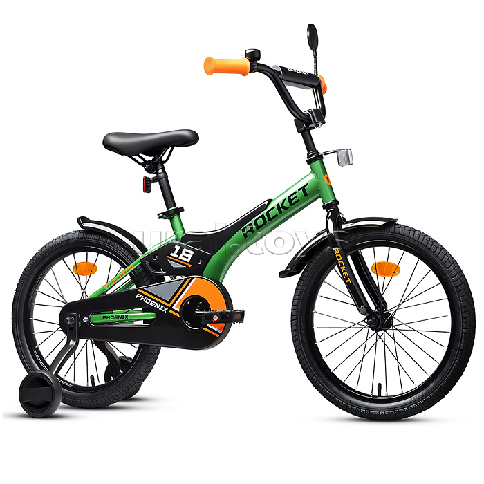 • Отлично держит дорогу за счет резиновых надувных колес, размером 18 дюймов. • В комплекте имеются дополнительные учебные колёса и звонок на руль. • Сиденье из ПВХ можно регулировать по высоте (57-67 см.) • Металлические брызговики защитят маленького велосипедиста от загрязнений. • Велосипед оснащен задним ножным тормозом. • Ширина руля: 54 см, оснащен противоскользящими прорезиненными ручками. • Велосипед подходит для детей 6-8 лет, ростом от 115 до 130 см. • Габаритные размеры велосипеда: 120 х 57 х 86 см. • Максимальная нагрузка: 50 кг. • Вес велосипеда без упаковки: 10 кг. • Рама: сталь. • Вынос: резьбовой. • Вилка: жесткая стальная. • Покрышки: 2,125.