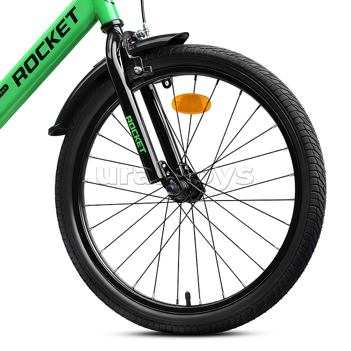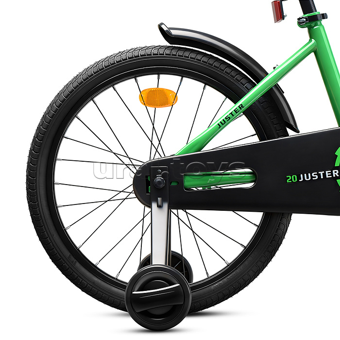 • Отлично держит дорогу за счет резиновых надувных колес, размером 20 дюймов. • В комплекте имеются дополнительные учебные колёса и звонок на руль. • Сиденье из ПВХ можно регулировать по высоте (55-65 см.) • Металлические брызговики защитят маленького велосипедиста от загрязнений. • Велосипед оснащен задним ножным тормозом. • Ширина руля: 55 см, оснащен противоскользящими прорезиненными ручками. • Велосипед подходит для детей 6-9 лет, ростом от 120–135 см. • Габаритные размеры велосипеда: 135 х 55 х 87 см. • Максимальная нагрузка: 50 кг. • Вес велосипеда без упаковки: 10 кг. • Рама: сталь. • Вынос: резьбовой. • Вилка: жесткая стальная. • Покрышки: 2,125.