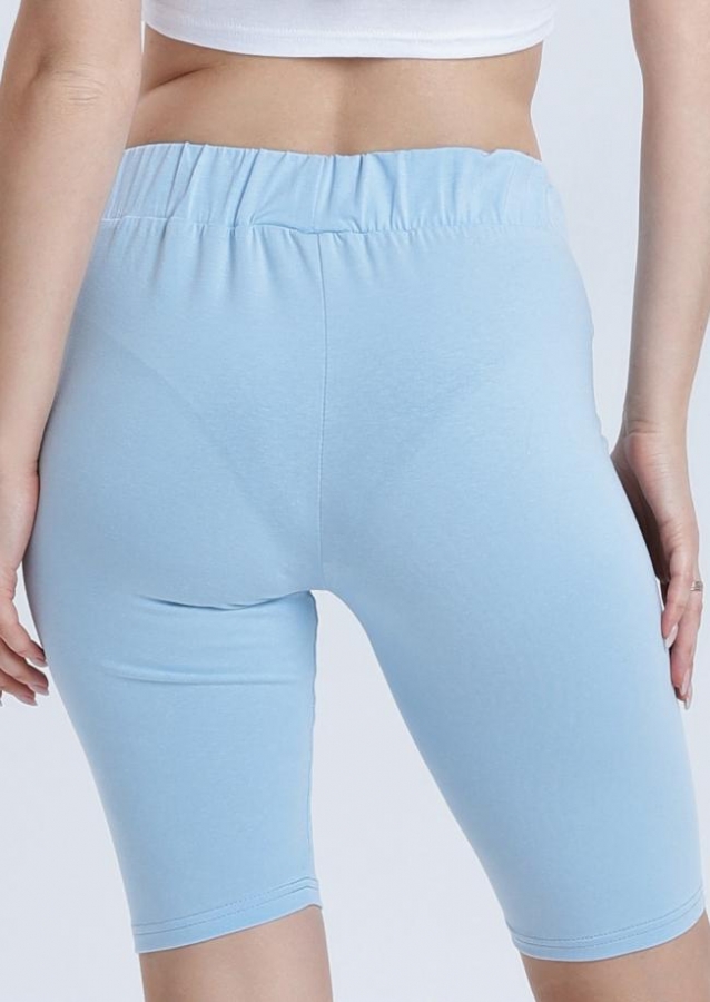 Велосипедки облегающего силуэта, с высокой линией талии. Пояс широкий отрезной с эластичной тесьмой внутри. Нижний срез обработан швом вподгибку.