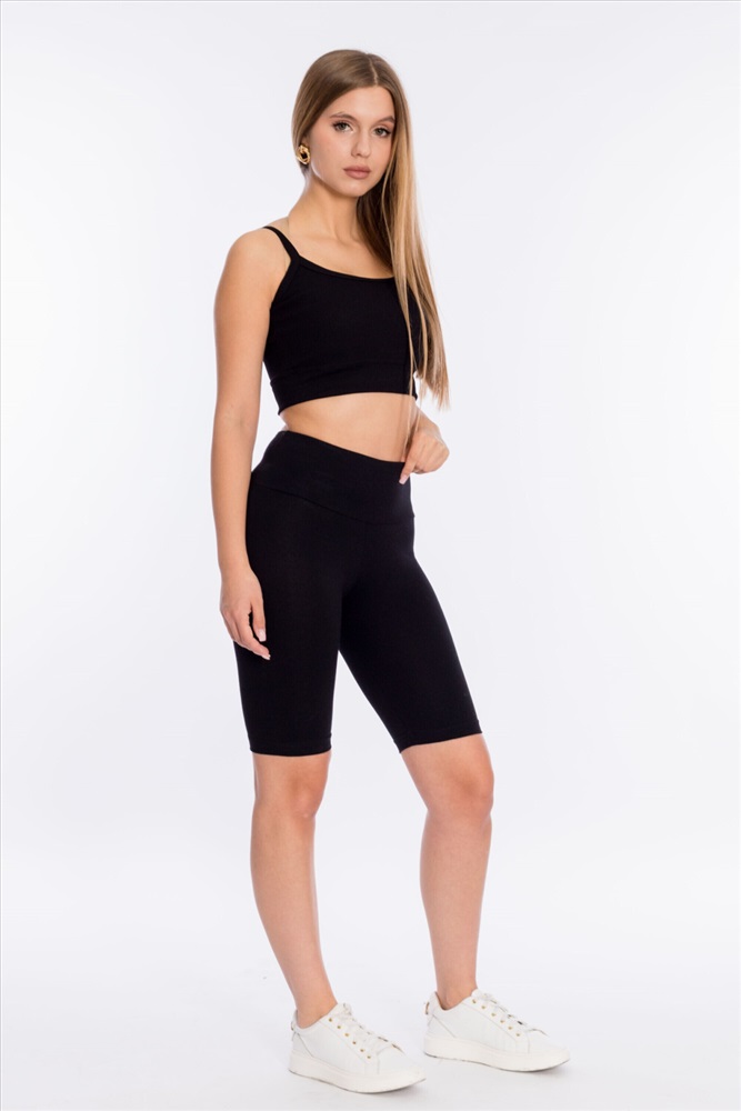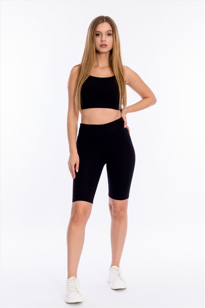 Цвет Номенклатуры: черный Велосипедки из однотонной кулирки с лайкрой с широким притачным поясом.