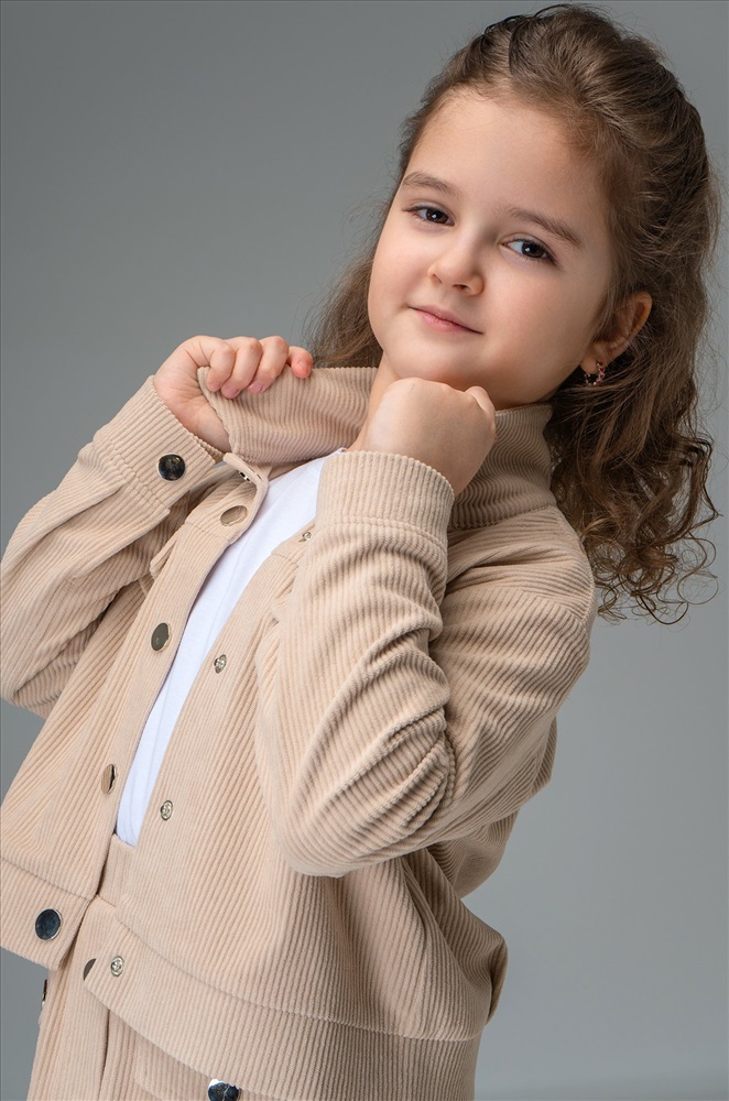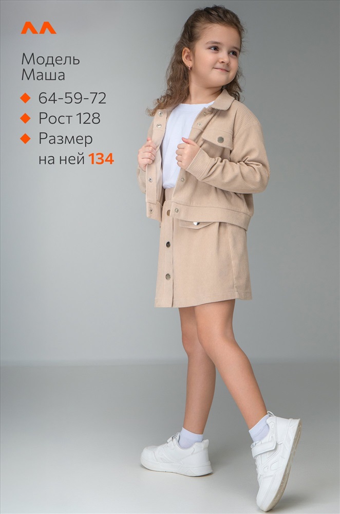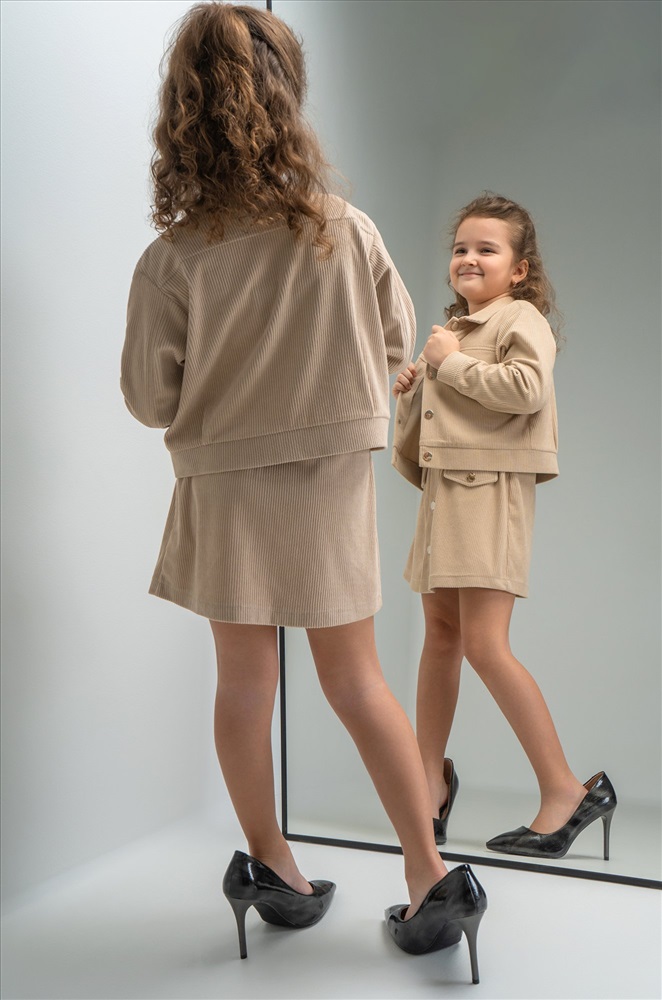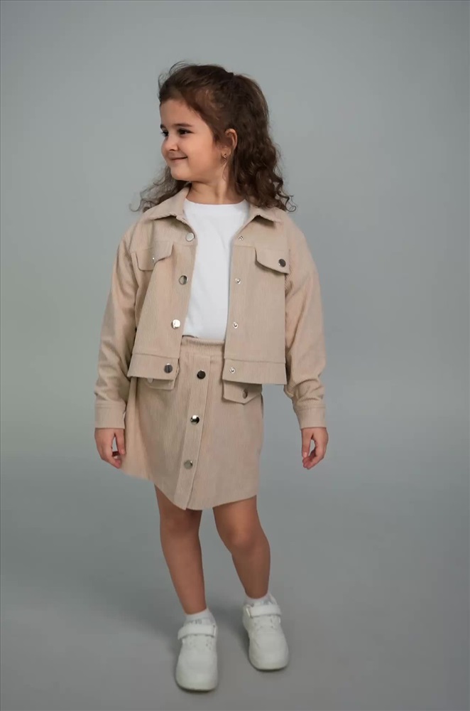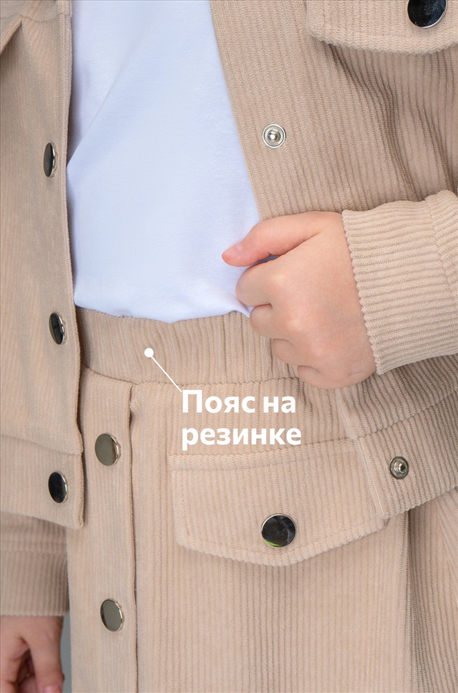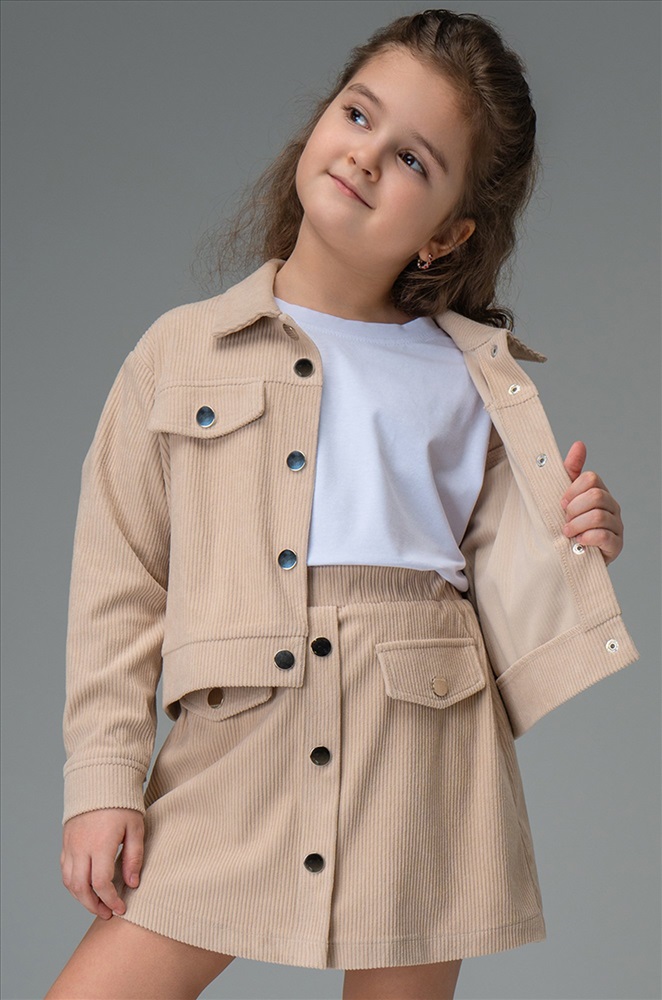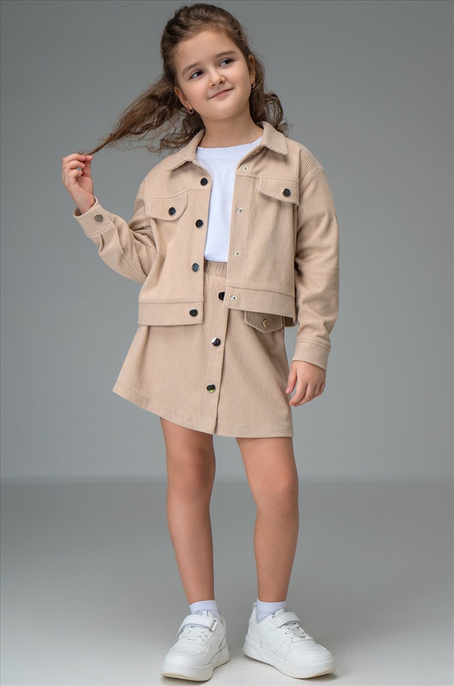 Детский вельветовый костюм двойка сочетает элегантность и комфорт. Бежевый костюм с юбкой для девочки и девочки подростка дополнит школьные образы.