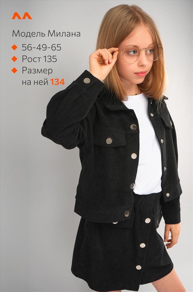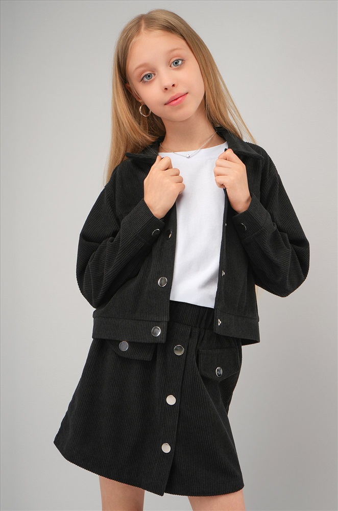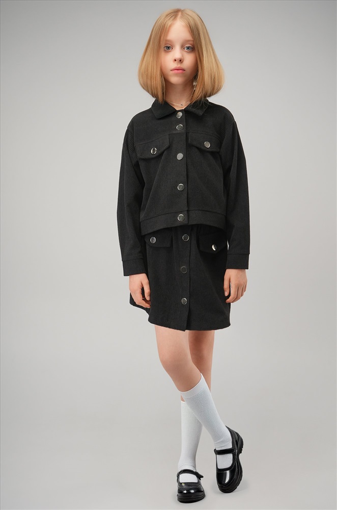 Детский вельветовый костюм двойка сочетает элегантность и комфорт. Черный костюм с юбкой для девочки и девочки подростка дополнит школьные образы.