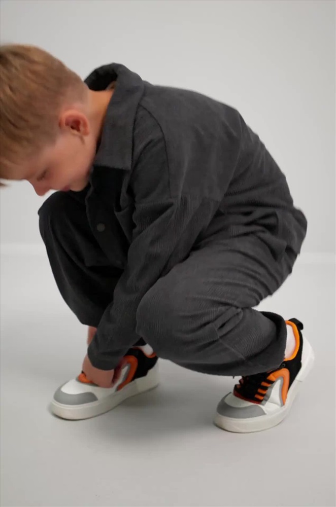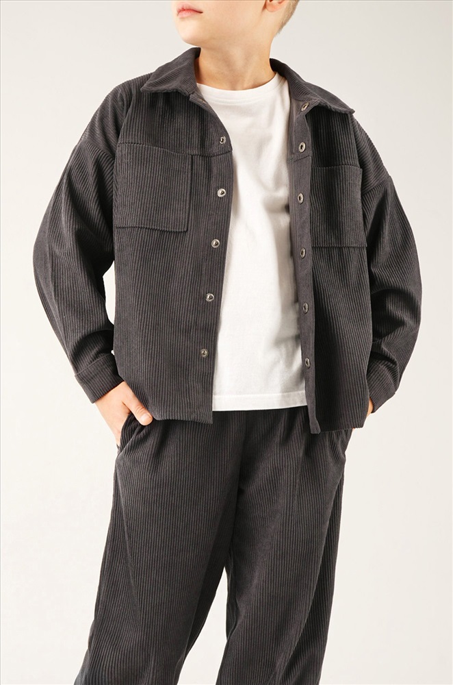 Готов к стильным победам? Вельветовый костюм для мальчика в графитовом цвете создан, чтобы каждый день был удобным и ярким. Свободный крой и универсальный однотонный дизайн — идеальный выбор для школы, прогулок и активного отдыха.