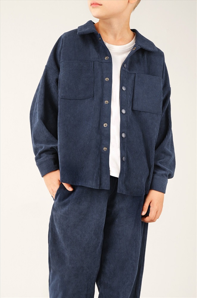 Преимущества: – комфортный вельветовый материал с приятной текстурой; – рубашка оверсайз с застёжкой на кнопки; – брюки джоггеры просты и комфортны в использовании; – эластичная резинка на поясе и манжетах для удобной посадки; – базовый вариант для детей и подростков. Крой оверсайз делает этот подростковый костюм универсальным: он подойдёт для школы и встреч с друзьями. Широкие штаны и рубашка оверсайз в одном комплекте создают гармоничный образ для подростка. Синий костюм в спортивном стиле идеально подойдёт для создания многослойных образов, добавляя глубину и характер образу школьника. Рост модели 139 см, параметры: объем груди 66, объем талии 63, объем бедер 76, на нем размер 140.