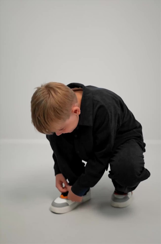 Готов к стильным победам? Вельветовый костюм для мальчика в черном цвете создан, чтобы каждый день был удобным и ярким. Свободный крой и универсальный однотонный дизайн — идеальный выбор для школы, прогулок и активного отдыха.