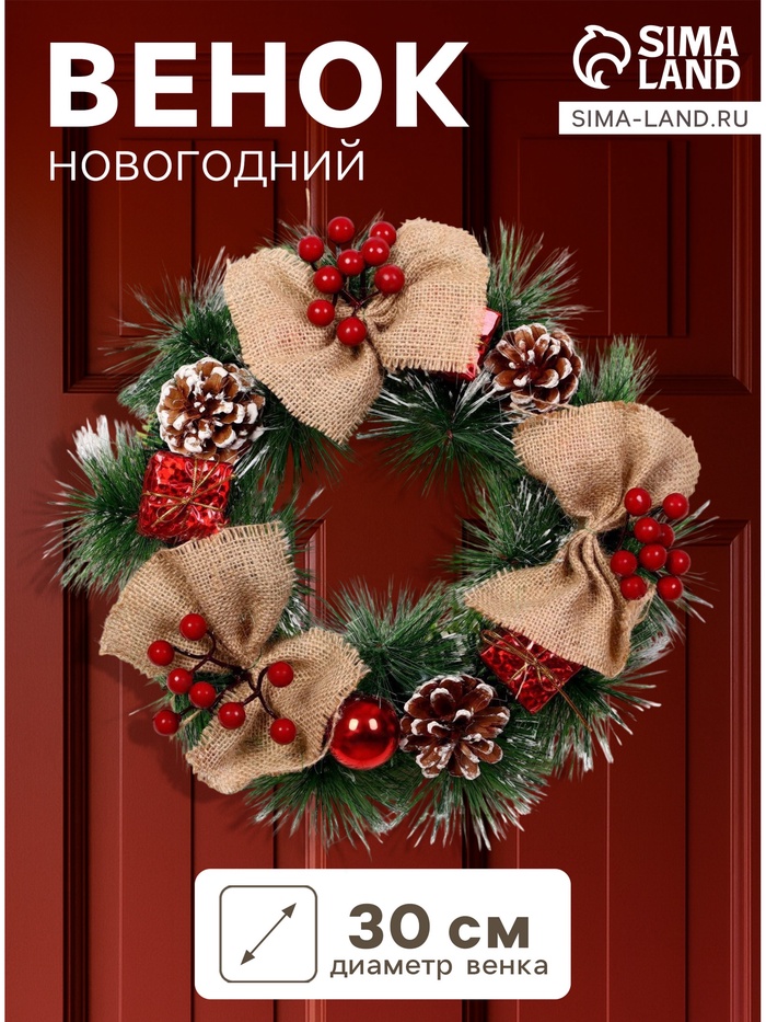 Добавьте немного зимней магии в свою жизнь с этим украшением. Оно станет не просто декоративным элементом, а настоящим символом праздника, который будет радовать вас и ваших гостей всё новогоднее season. Пусть каждый уголок вашего дома засияет теплом и светом благодаря этому удивительному созданию! КомплектацияВ комплект входит один венок диаметром 30 см. Комментарии к товару