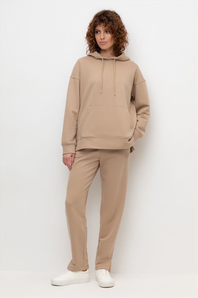 Брюки прямого кроя с боковыми карманами из петельчатого футера трехнитки. Гладкий и плотный материал на основе хлопка сохраняет форму.