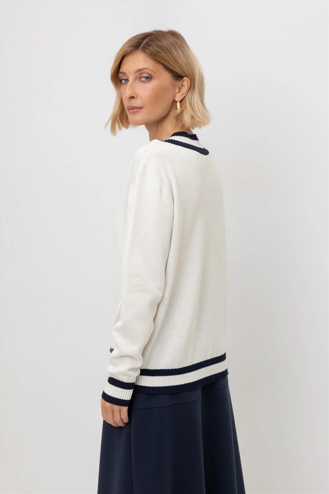 Производитель: VERY NEAT; Артикул поставщика: ЕВ 30204; Ткань: Пряжа Хлопок 50% / Акрил 50%; Состав: 50% хлопок, 50% акрил; Сезон: Весна, Лето; Год: 2025; Страна: Россия; Российский размер: 44; Рост: 164-170; Обхват груди: 88; Обхват талии: 70; Обхват бедер: 94 Гладкий хлопковый джемпер с V-вырезом является основой любого гардероба. Его дополняет не менее классическая отделка контрастными деталями, а спущенная линия плеч завершает его комфортной посадкой.