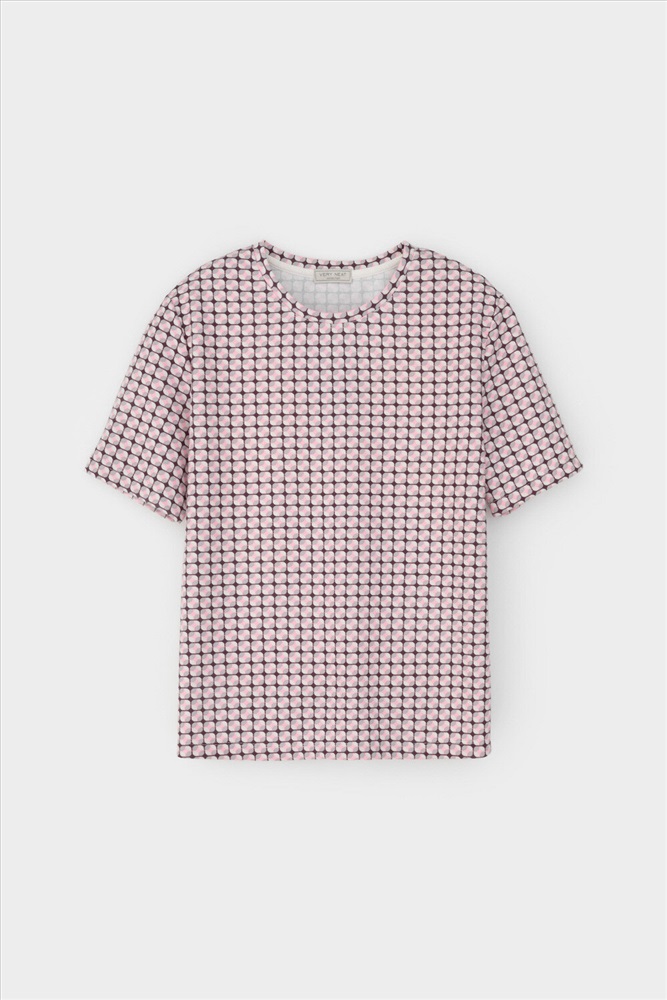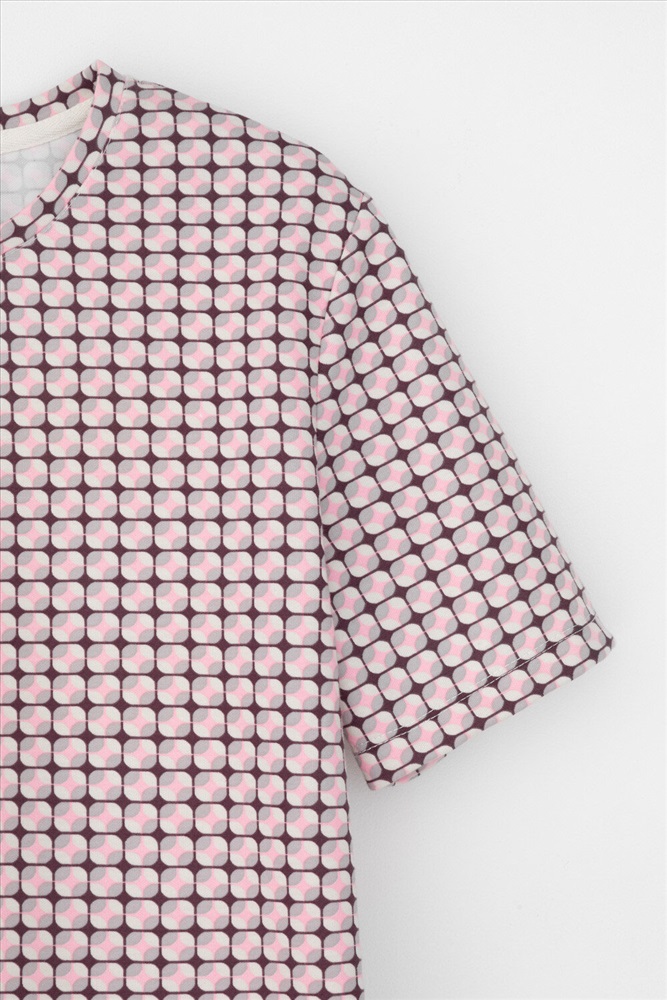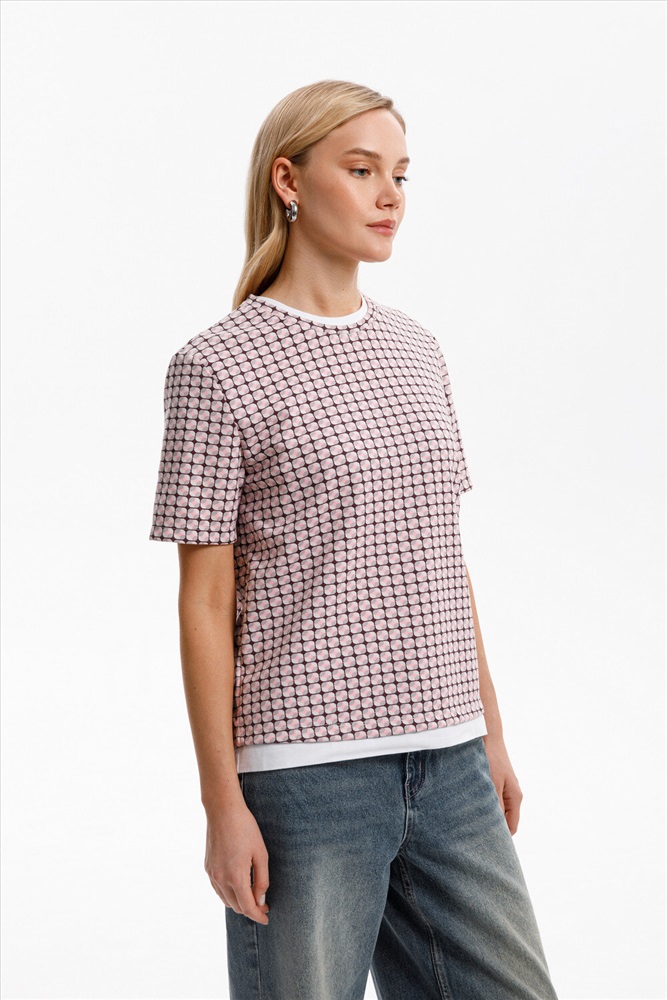 Футболка прямого силуэта, изготовленная из премиального трикотажного полотна DOUBLE FACE. Мягкий на ощупь трикотаж выполнен из высококачественной гребенной пряжи, а его яркий графический дизайн добавляет летнего настроения.