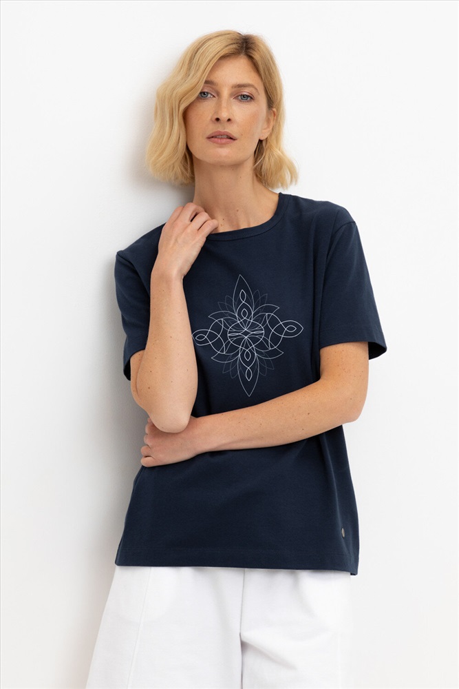 Футболка прямого силуэта из высококачественного гребенного хлопка с добавлением эластана. Мягкий на ощупь принт выполнен из водных красок, что обеспечивает устойчивость к многократным стиркам, а его дизайн добавляет летнего настроения.