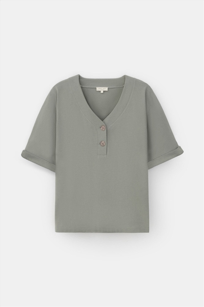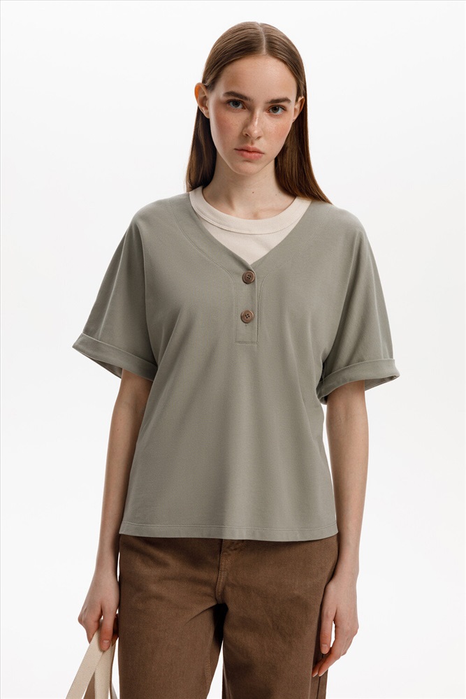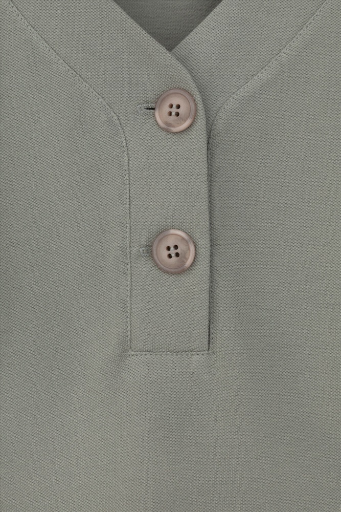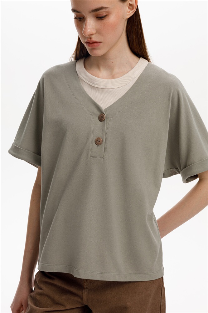 Трикотажная футболка с удлиненными рукавами изготовлена из легкого хлопка с рельефной текстурой пике. Широкие манжеты и V-вырез с пуговицами в тон изделия позволяют сочетать ее как с классическими, так и с более спортивными стилями.