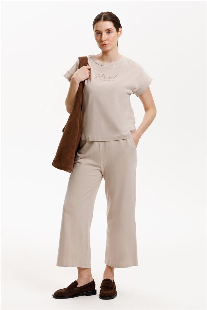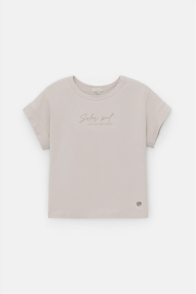 Футболка прямого силуэта из высококачественного гребенного хлопка с добавлением эластана. Нежная и струящаяся фактура полотна за счет специальной обработки soft touch дает ощущение комфорта в жаркие летние дни. Мягкий на ощупь принт выполнен из водных красок, что обеспечивает устойчивость к многократным стиркам.