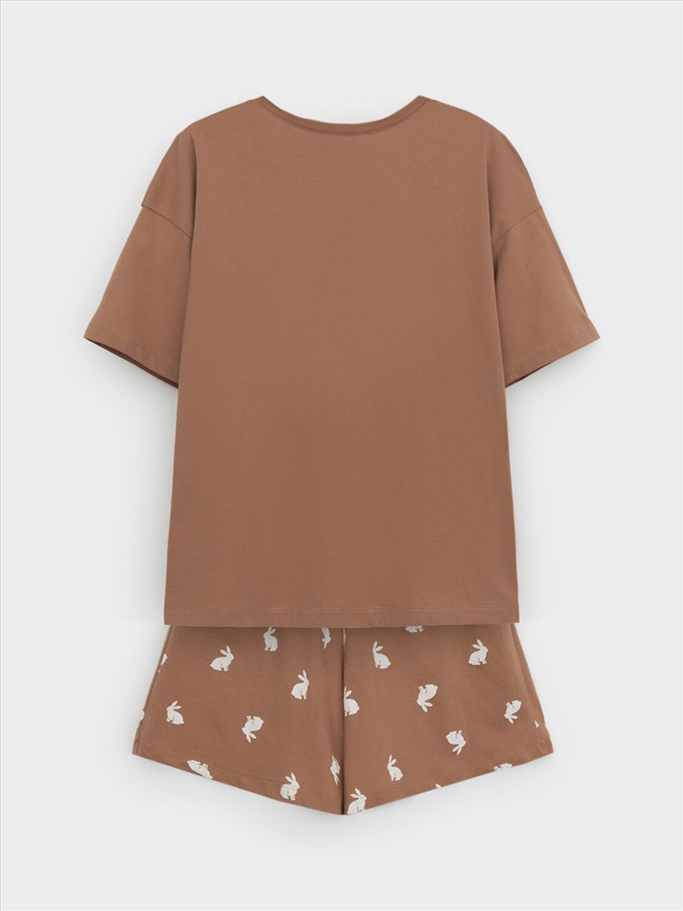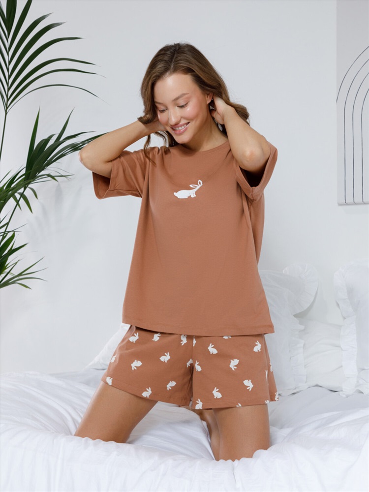 Комплект для комфортного сна и отдыха из трикотажного полотна с набивным рисунком и принтом. Футболка с короткими спущенными рукавами и шорты с мягкой эластичной резинкой в поясе, которые удобно садятся по фигуре. Гладкий материал приятен к телу, не теряет форму и позволяет коже дышать.