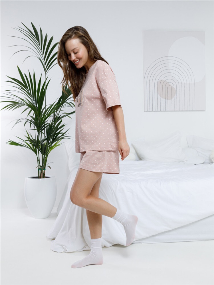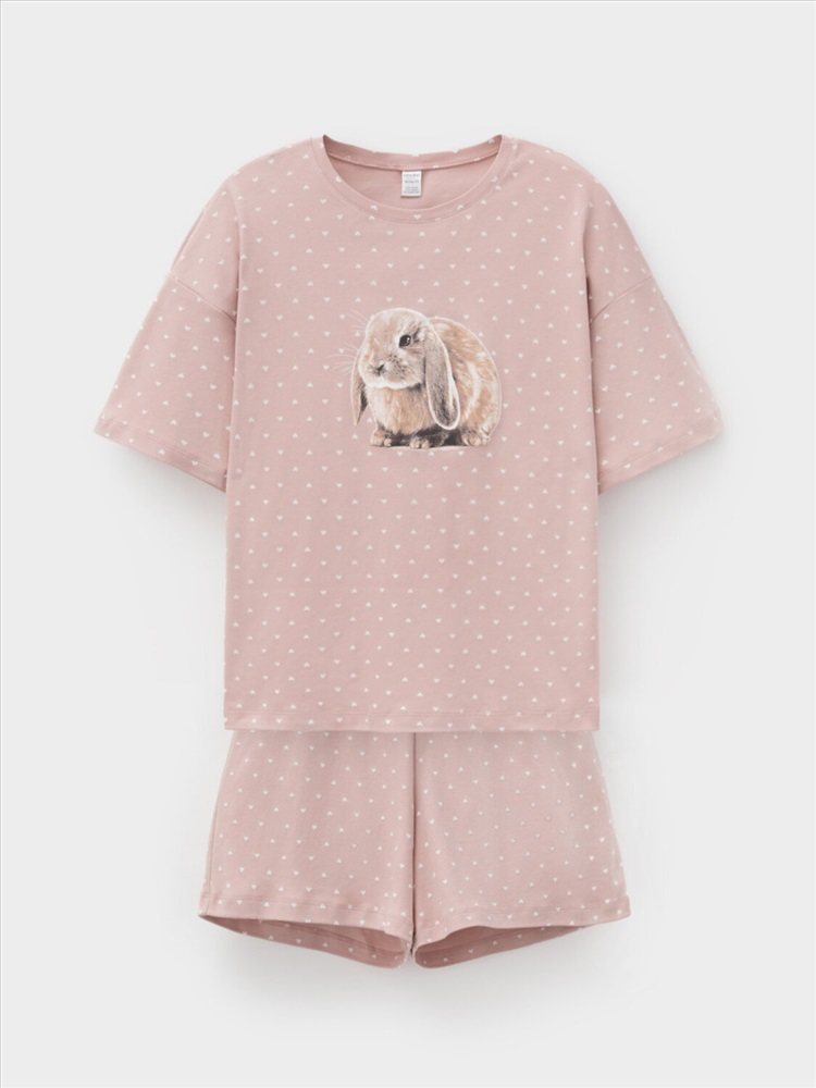 Комплект для комфортного сна и отдыха из трикотажного полотна с набивным рисунком и принтом. Футболка с короткими спущенными рукавами и шорты с мягкой эластичной резинкой в поясе, которые удобно садятся по фигуре. Гладкий материал приятен к телу, не теряет форму и позволяет коже дышать.