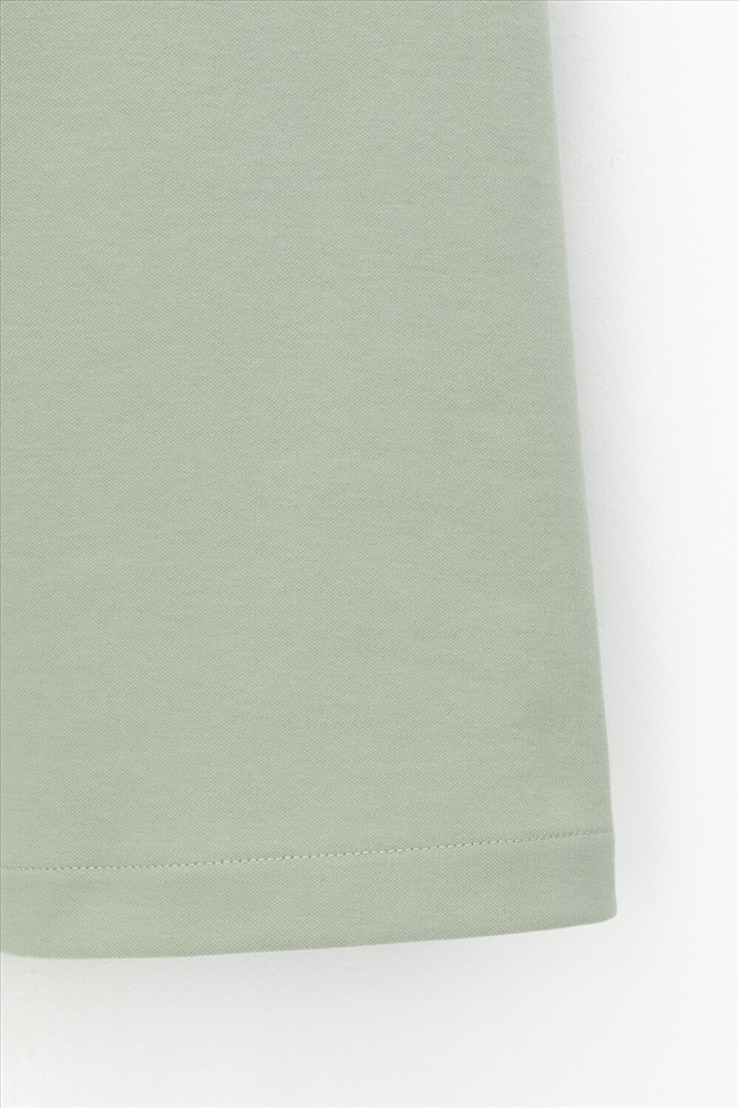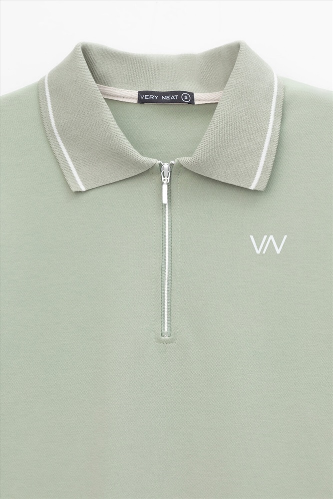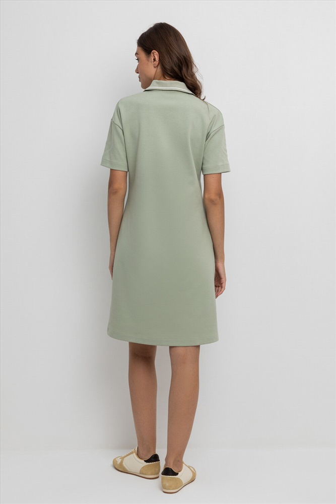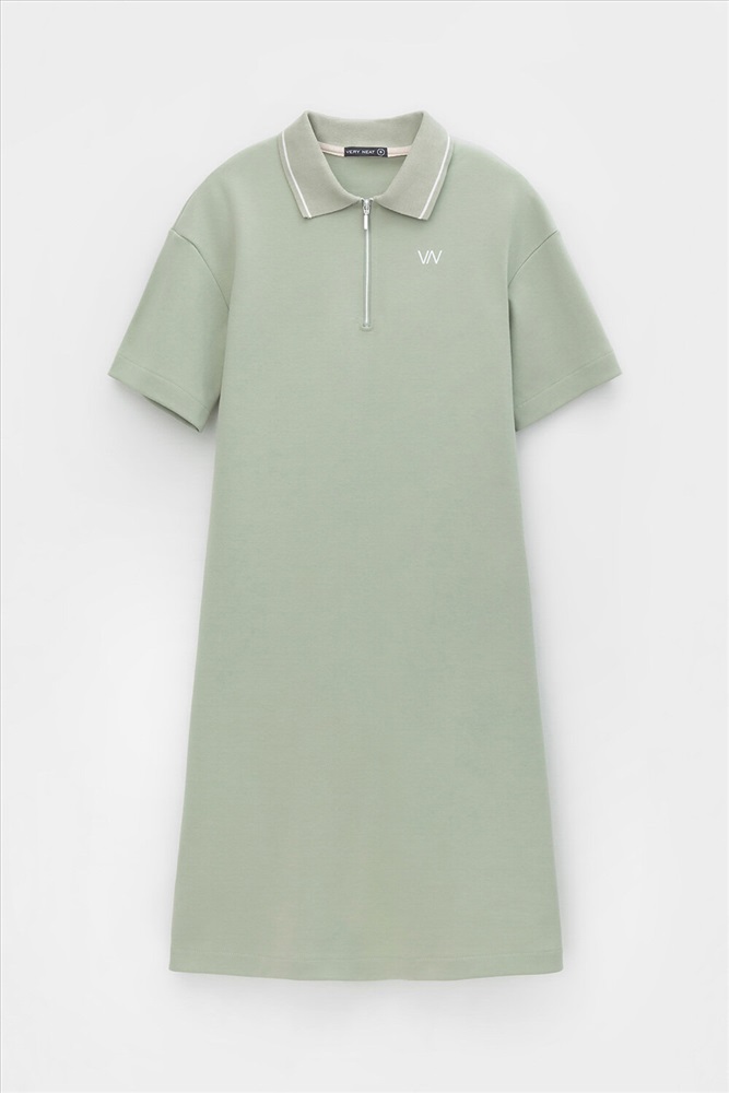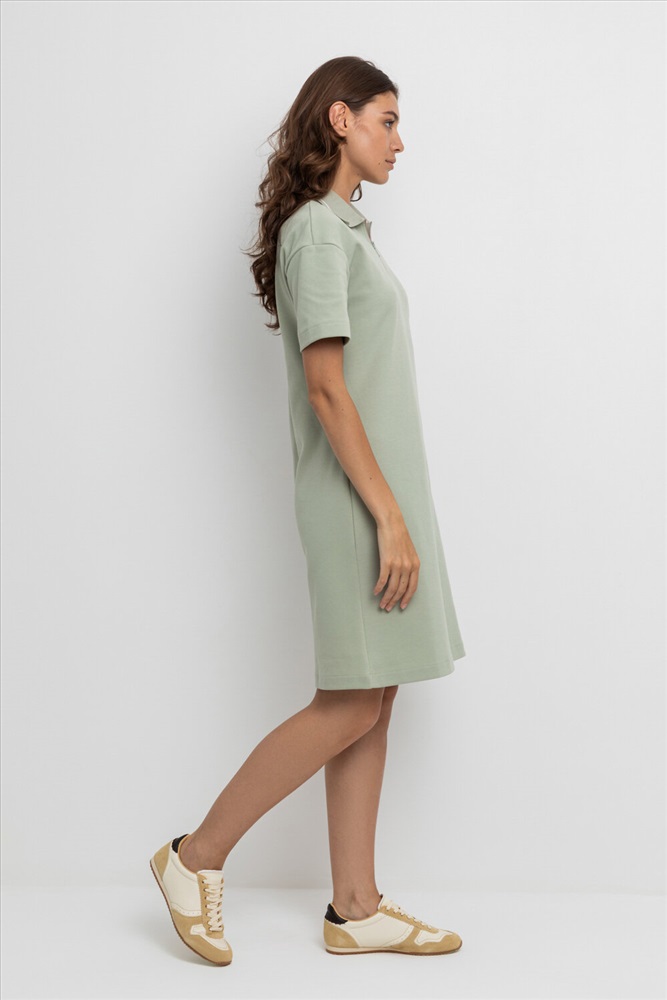 Платье поло с короткими рукавами из плотного гладкого трикотажа интерлок с застежкой на молнию . Спущенное плечо придает изделию свободный силуэт.