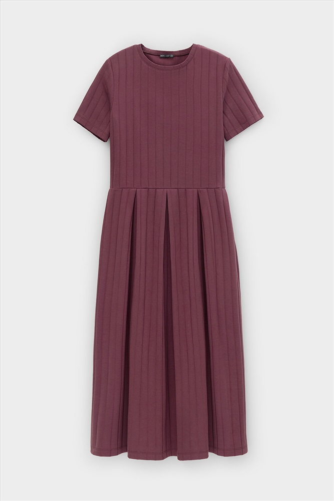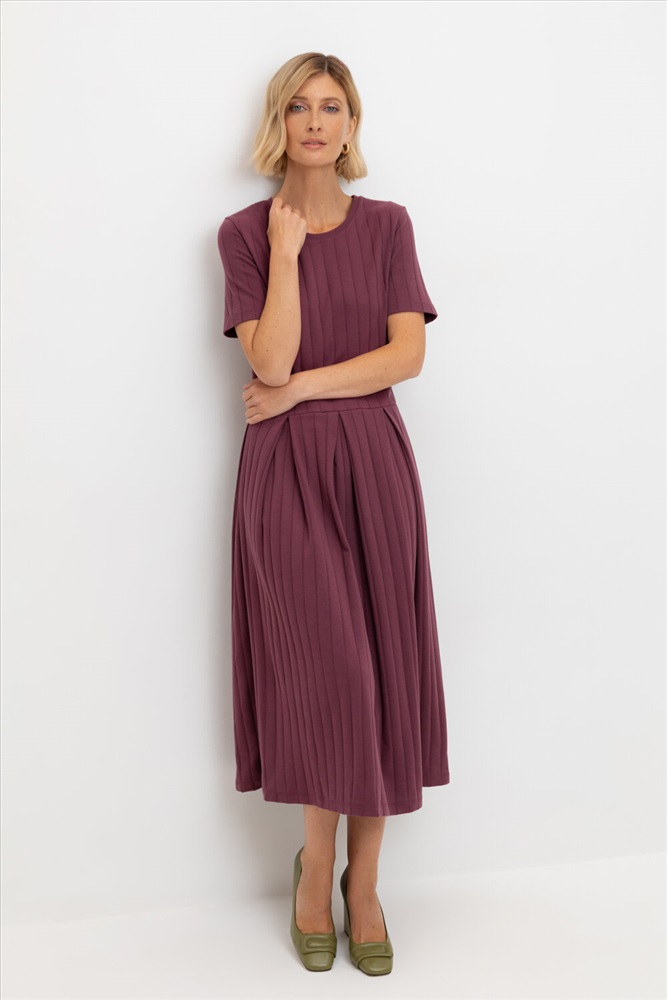 Платье с круглым вырезом и короткими рукавами из плотного гладкого трикотажа интерлок в рубчик. Все трикотажные полотна производятся в соответствии с нормами Швейцарского сертификата ЭкоТекс. Сделано в России