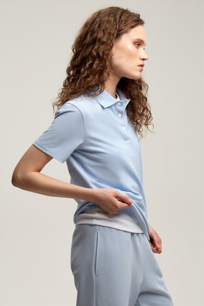 Классическая модель футболки-поло из легкого трикотажа пике в нежно-голубом оттенке. Придает комфорт за счет мягкого хлопка в составе.